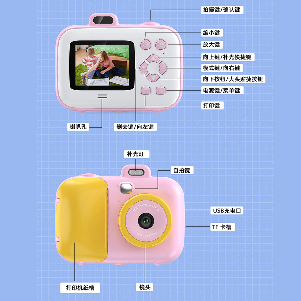 跨境专供智能数码儿童拍立得相机高清美颜打印照相机玩具批发热敏