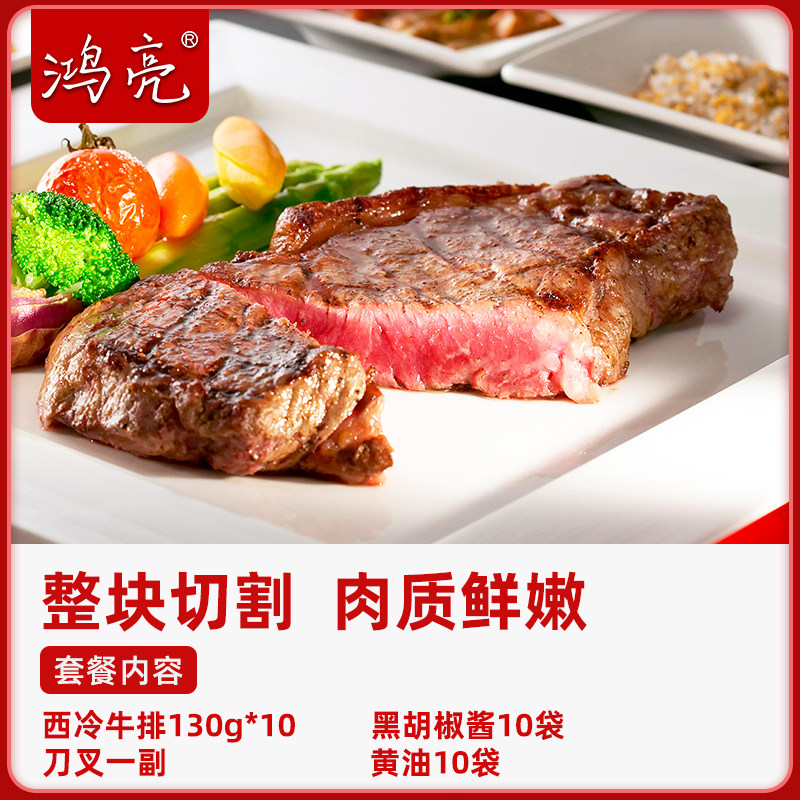 鸿亮西冷厚牛排套餐黑椒10片牛肉家用冷冻草饲牛肉正切调理