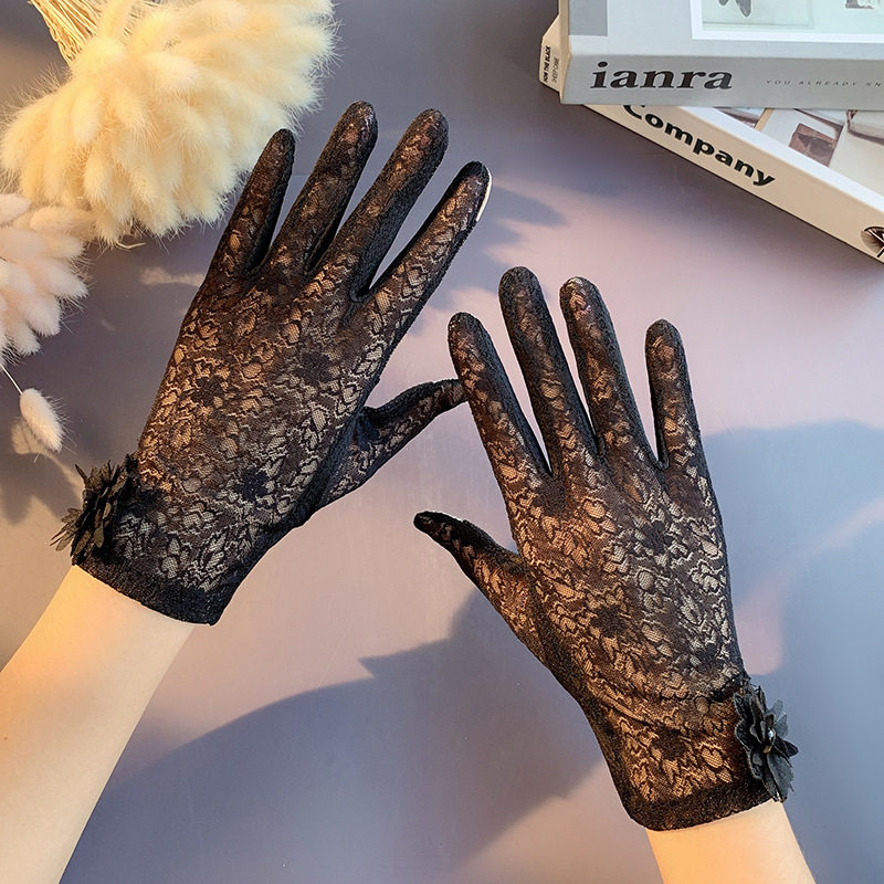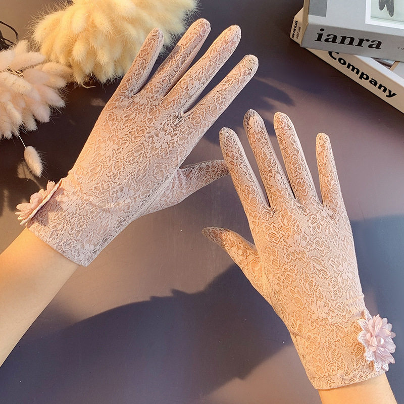 防晒手套女春夏季透气薄款运动骑行开车分指防滑耐磨蕾丝触屏手套