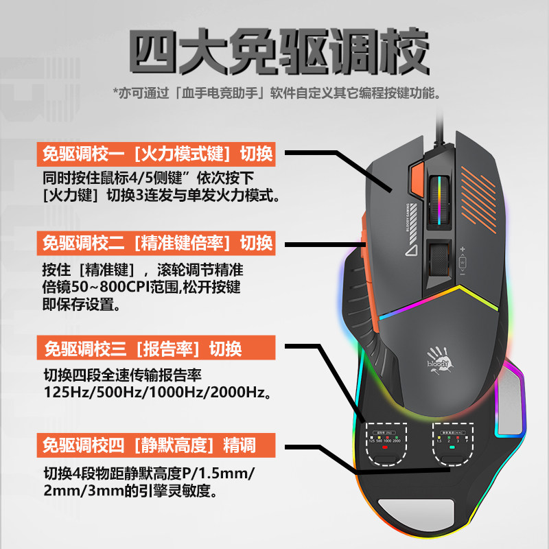 双飞燕血手幽灵ES52 Pro专业电竞鼠标游戏竞技PMW3389芯片宏编程