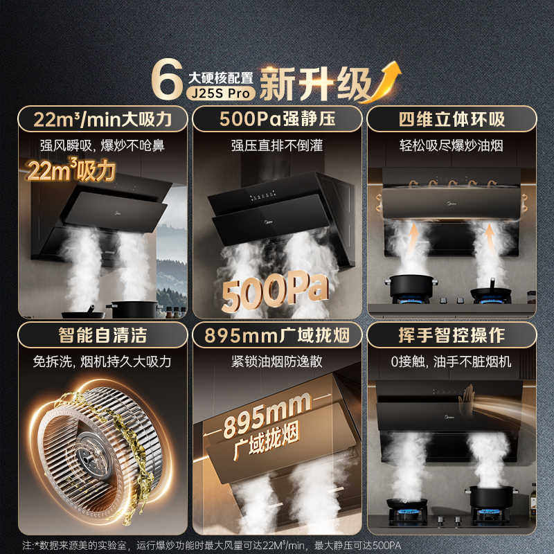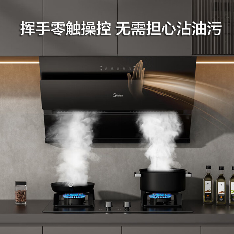 美的抽油烟机家用出租房侧吸式大吸力挥手自动清洗官方旗舰店烟机