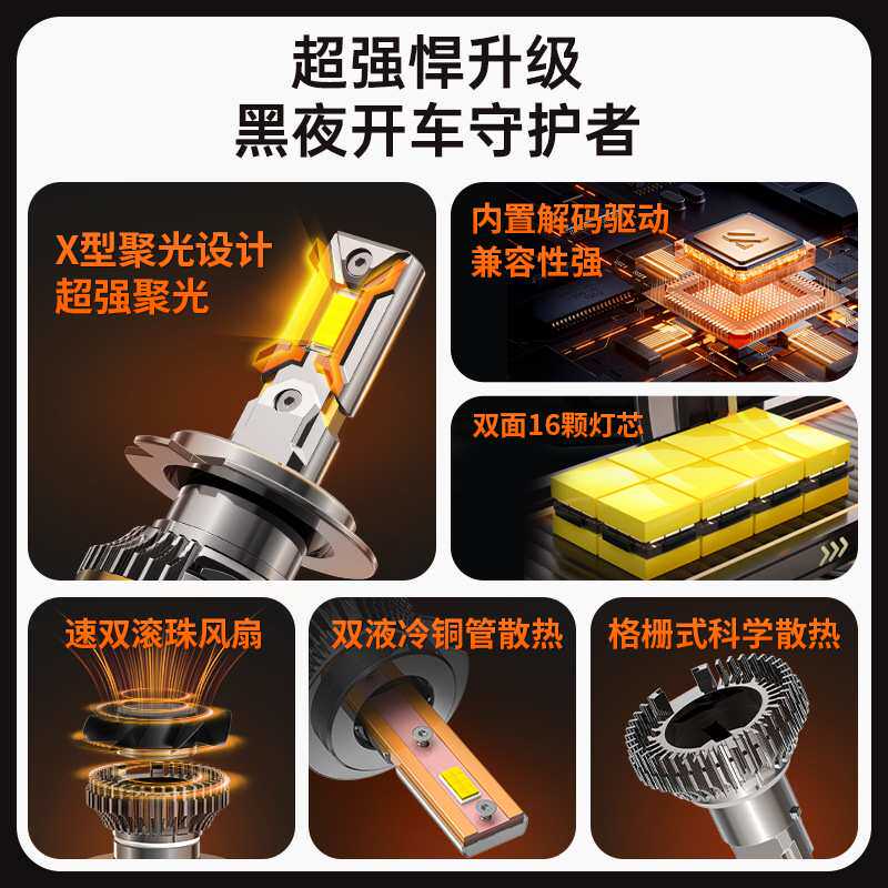 鲸特汽车大灯H8高亮h11强光H4远近一体9005改装h7灯泡9012远近光