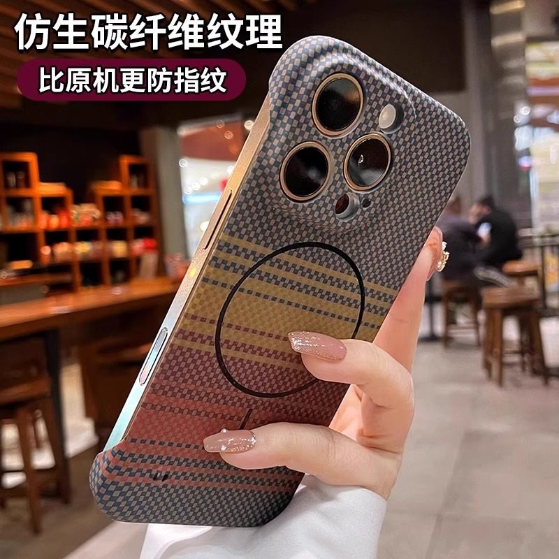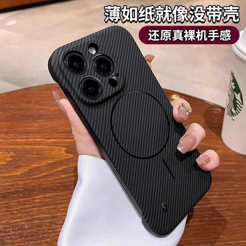 散热无边框适用iphone16promax苹果15pro碳纤维纹13细圈磁吸12超薄17防摔14plus高级感凯夫拉男女半包外壳夏