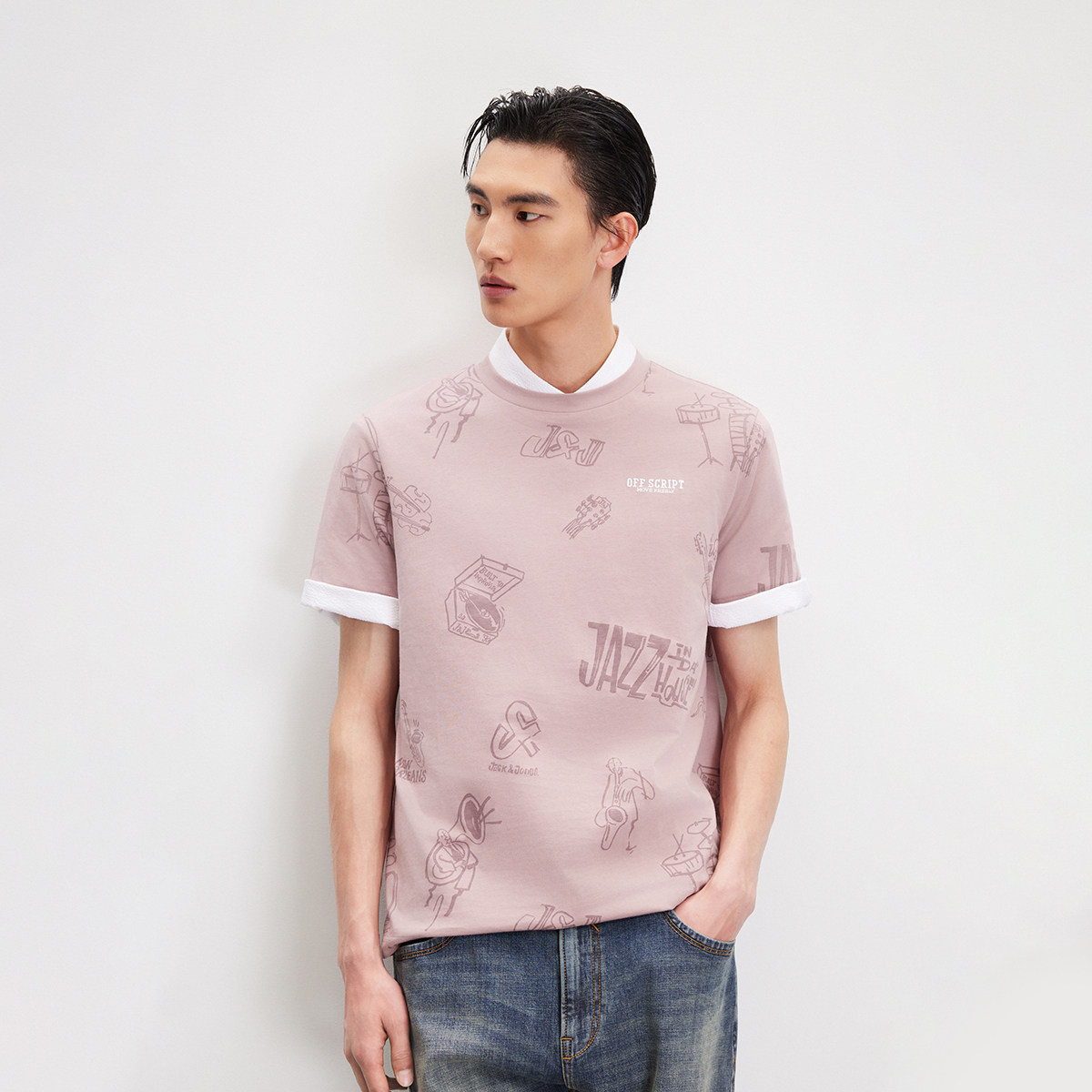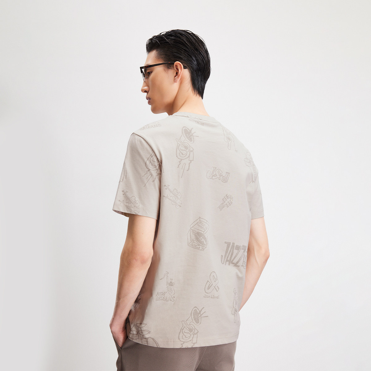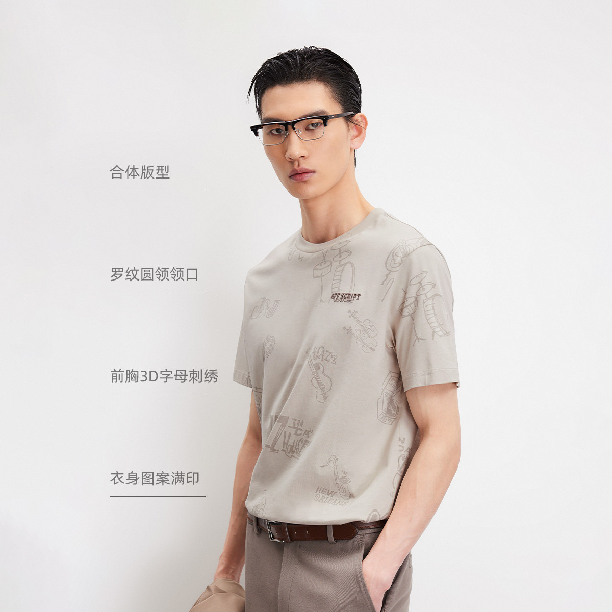 【满印】杰克琼斯男装夏新款立体刺绣短袖T恤合体纯棉情侣打底衫
