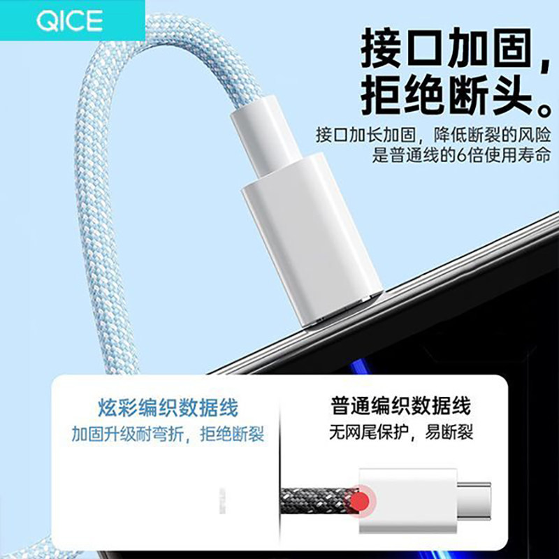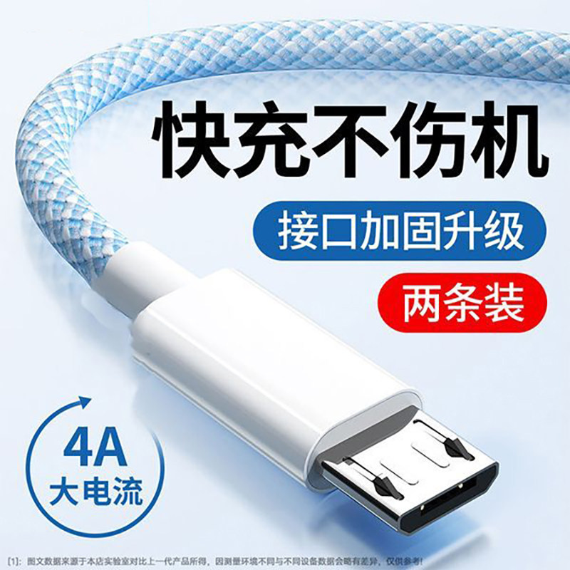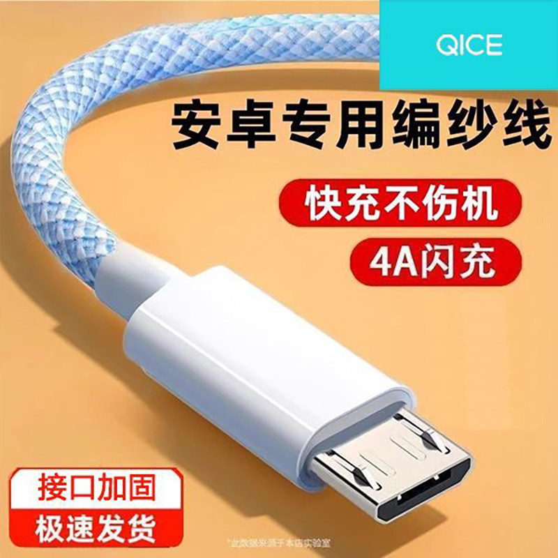 齐冰快充安卓数据线梯形适用华为vivo小米oppo红米加粗加长安卓编织线USB接口闪充线老款手机接口