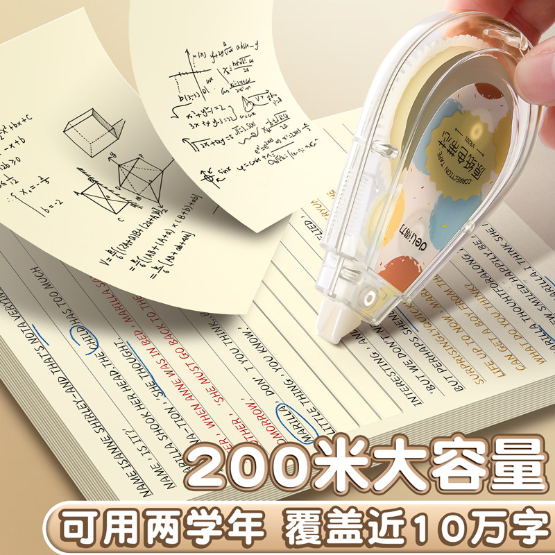 得力米黄色隐形修正带小学生专用实惠装顺滑静音大容量护眼原纸色