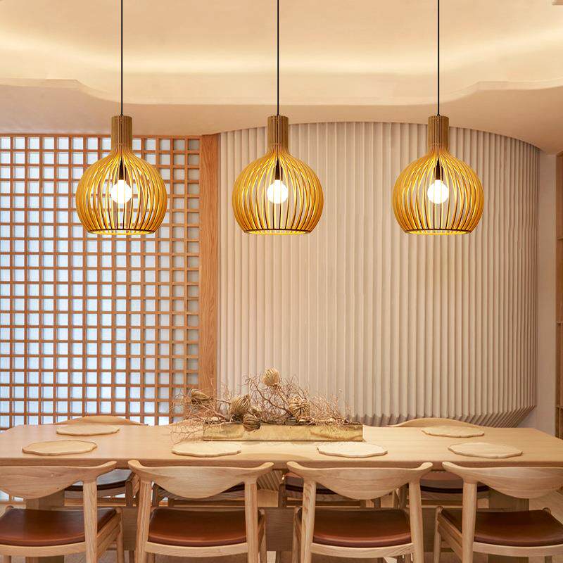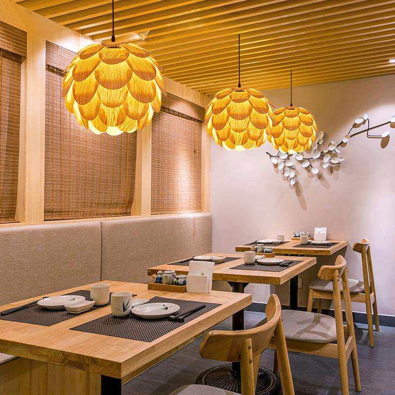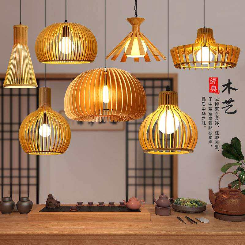 日式复古吊灯原木创意个性艺术餐厅吧台灯简约餐饮店中式装饰灯具