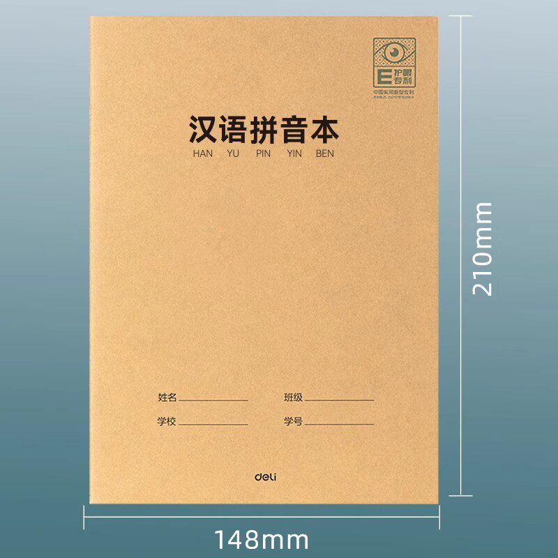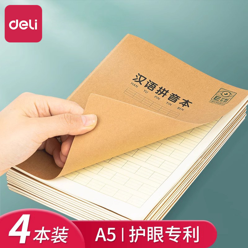 得力4本装a5汉语拼音本护眼专利牛皮纸笔记本子软面抄软抄本记事本车线练习作业小学生田字格本作业本练习簿