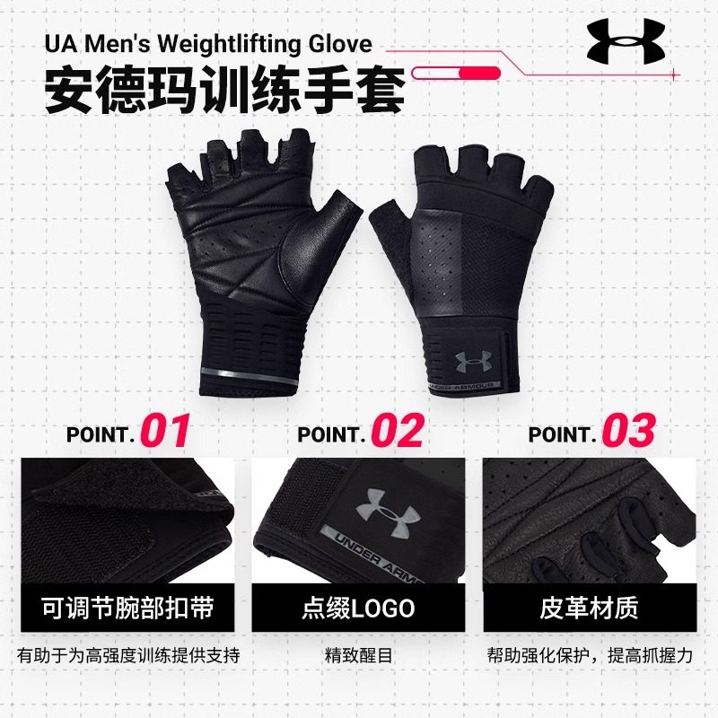 安德玛UA男士健身训练手套夏季新款撸铁运动护具户外骑行装备护掌