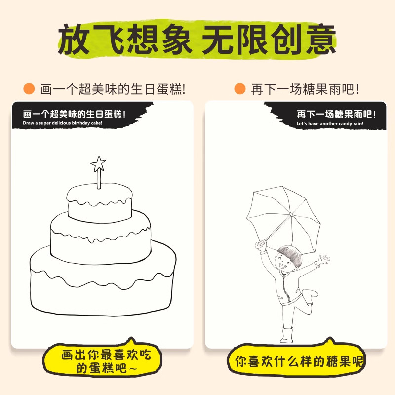 我的创意漫画绘本全套6册幼儿园绘画涂色书中英双语儿童画画本填色书动物造型太空世界食物水果故事蛋糕入门