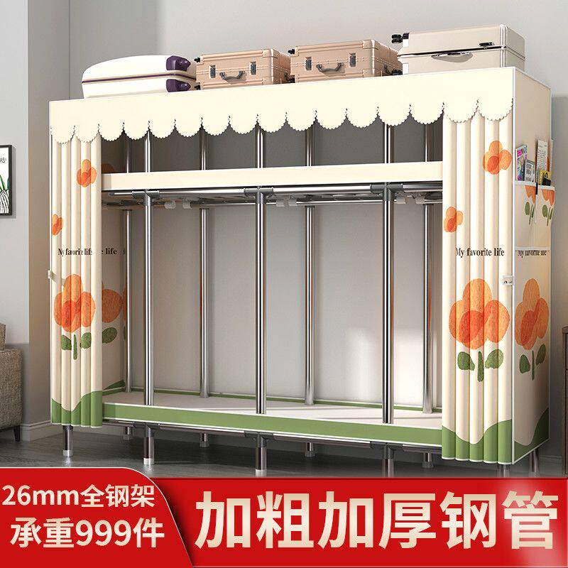 升级加粗钢管全钢架简易衣柜简易布衣柜加厚合金接头对开门宿舍
