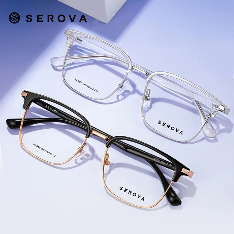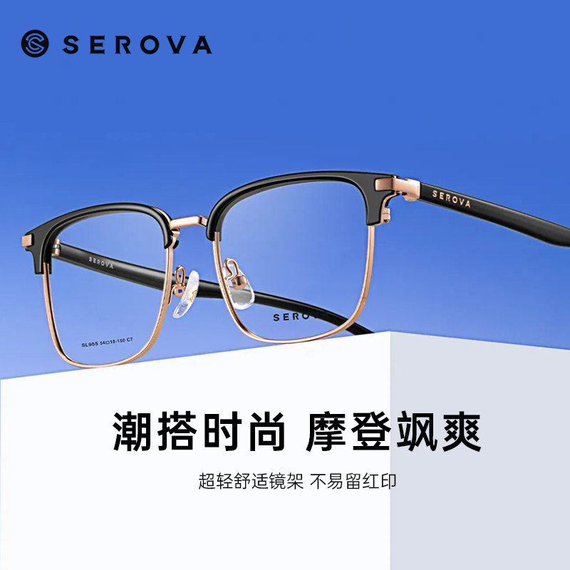 SEROVA施洛华眉线框商务眼镜框男女近视眼镜架配防蓝光镜片SL955