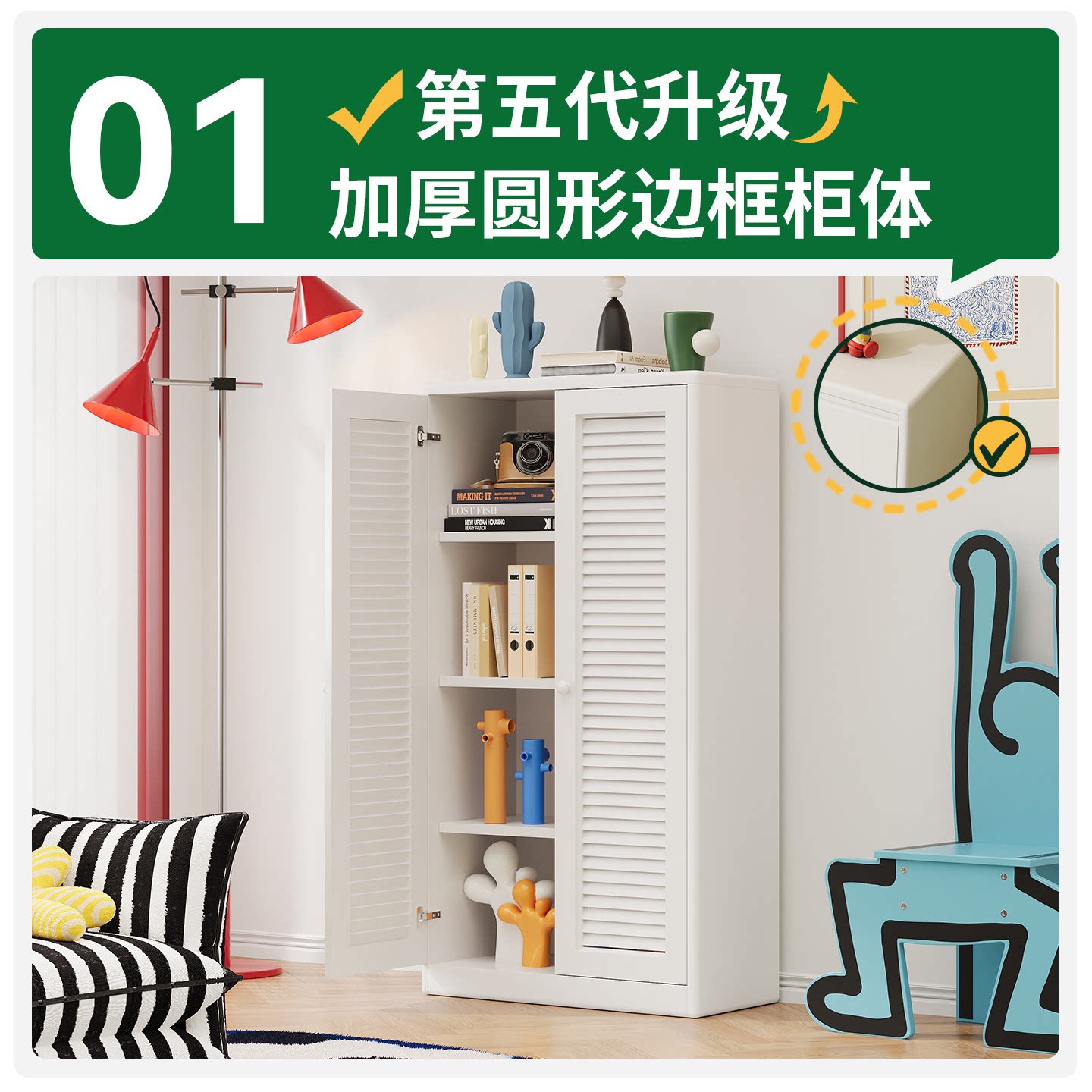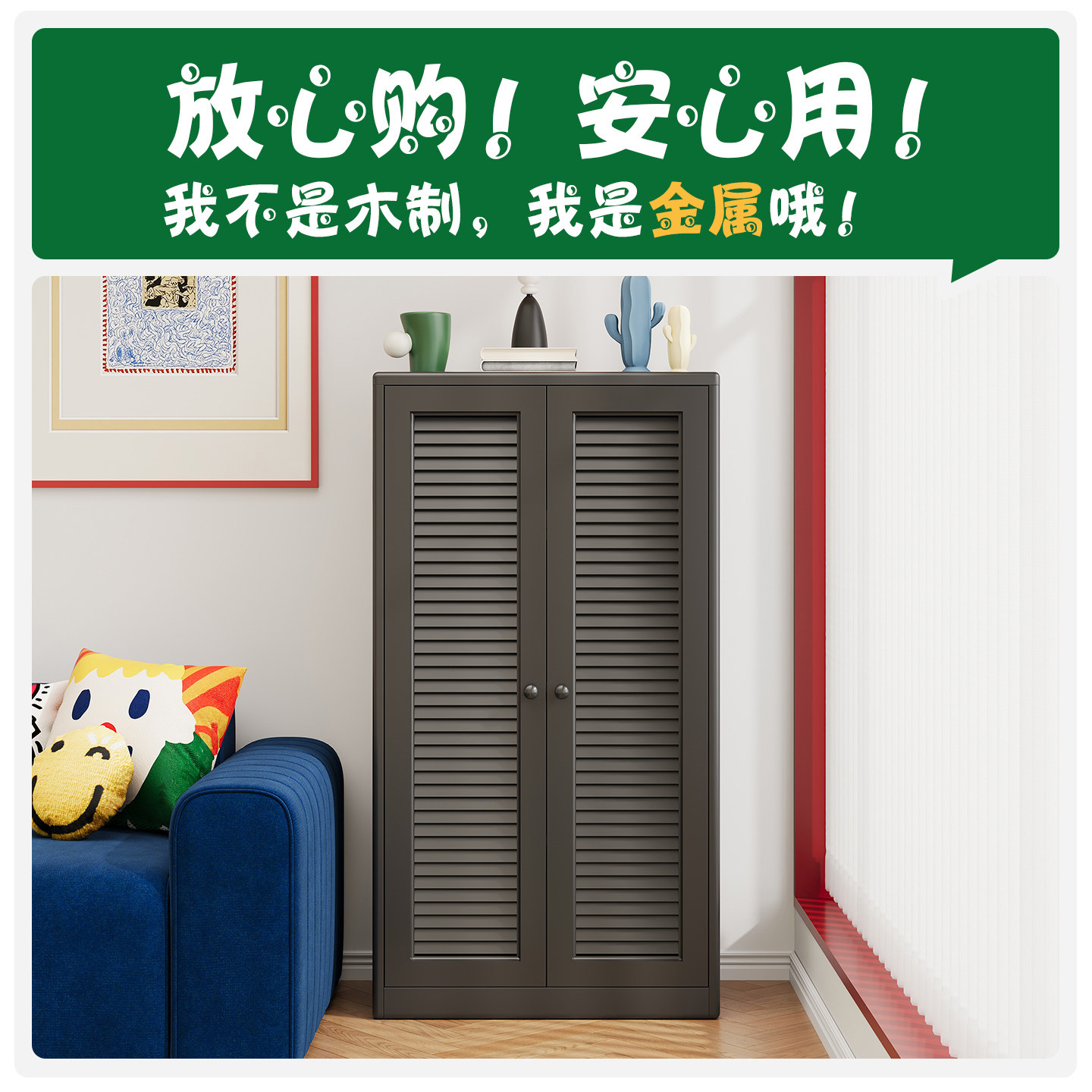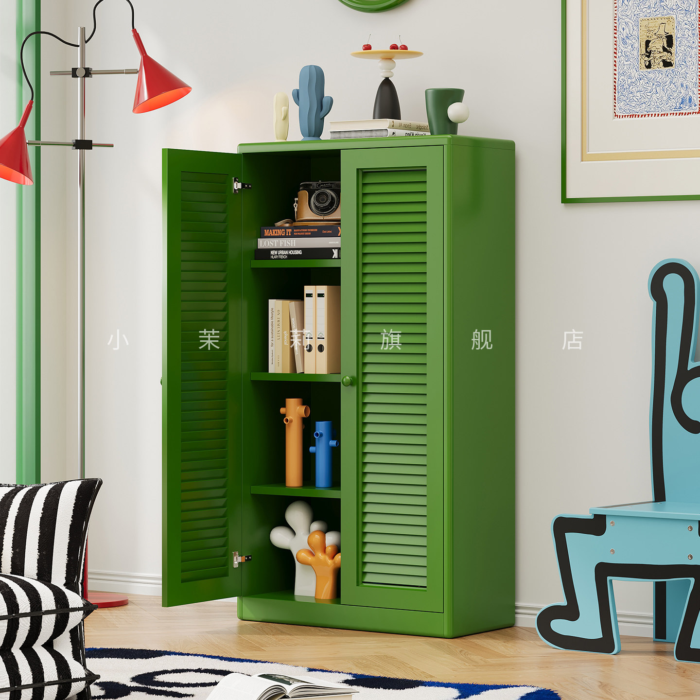 复古儿童书柜客厅带门新款防尘落地铁艺书架金属收纳置物柜组合柜