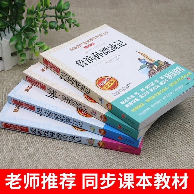 鲁滨逊漂流记六年级下册快乐读书吧全套4册 必读的课外书正版原著完整版6六下阅读书籍汤姆索亚历险记骑鹅旅行记爱丽丝漫游奇境孙A