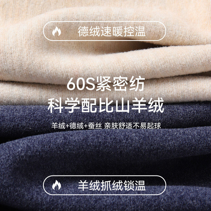 雅鹿男士德绒无痕保暖裤羊绒蚕丝秋裤薄款棉毛裤内穿绒裤冬季舒适