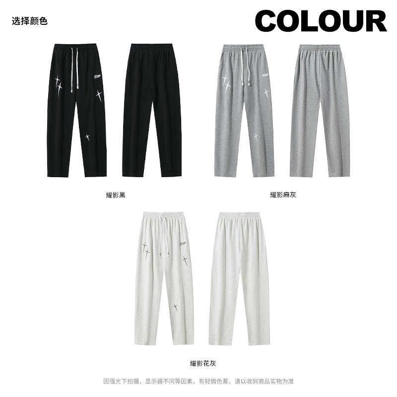准者直筒宽松运动长裤秋冬新款男士休闲跑步篮球黑色针织加绒卫裤