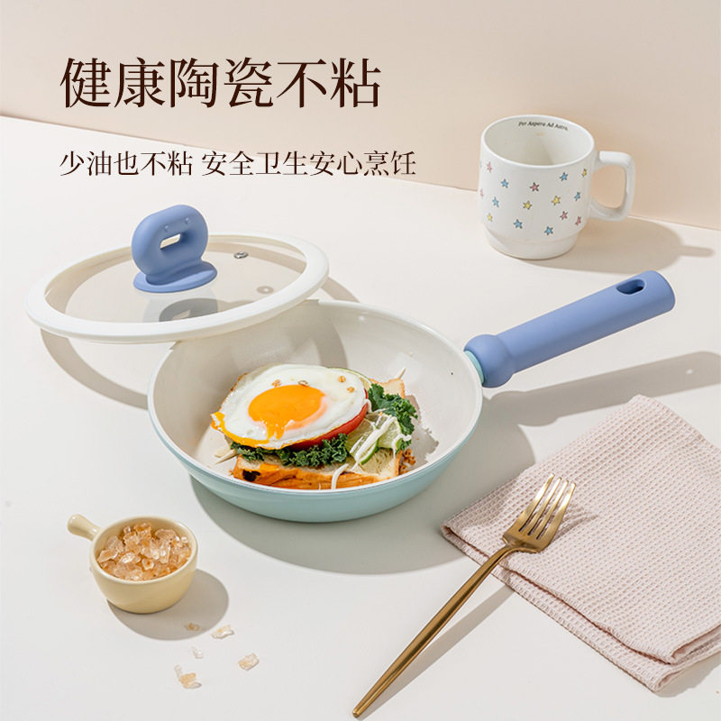 钛陶瓷聚油煎锅平底锅不粘锅家用牛排小煎锅煎蛋煎饼电磁炉专用N
