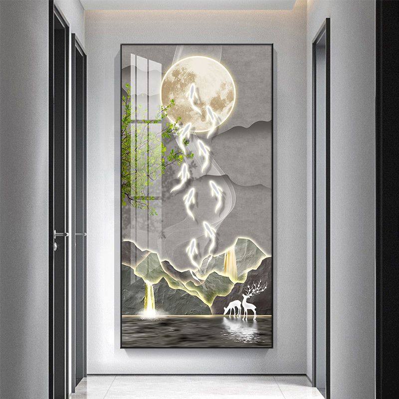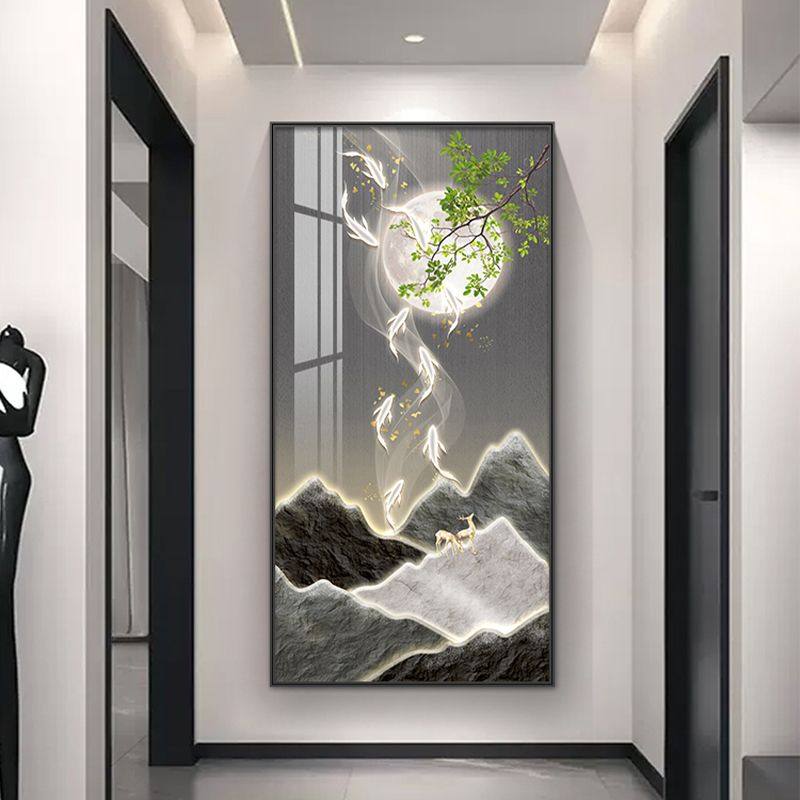 轻奢高级感九鱼图玄关装饰画入户门走廊过道挂画现代简约客厅壁画