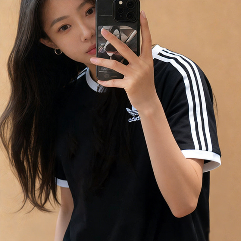 阿迪达斯三叶草黑色短袖女夏季新款Jennie同款T恤圆领半袖男