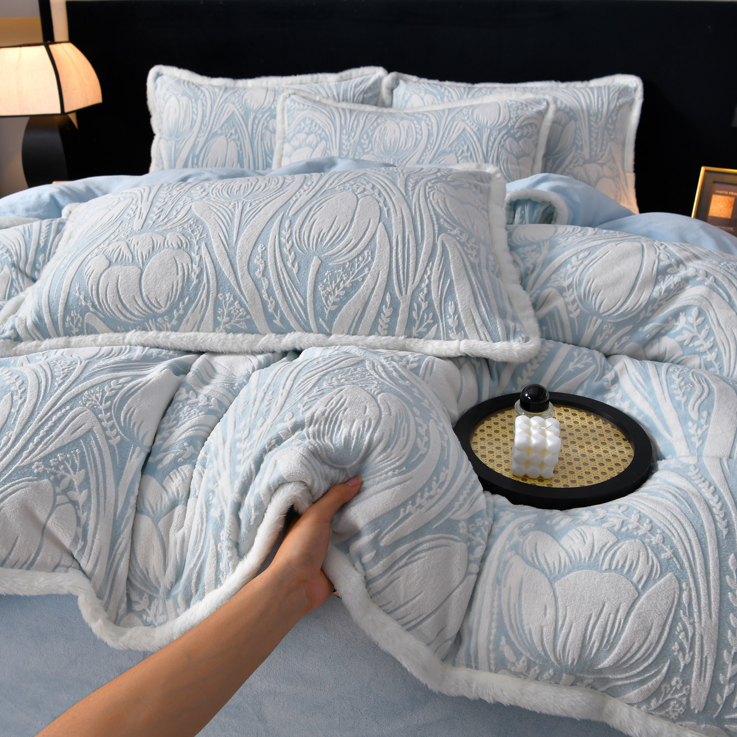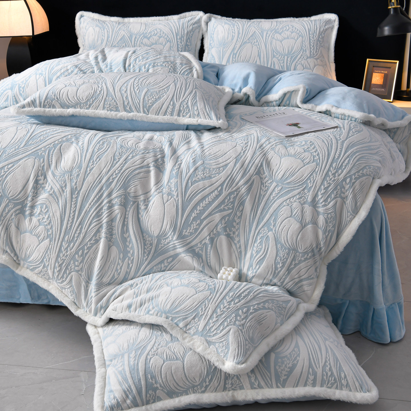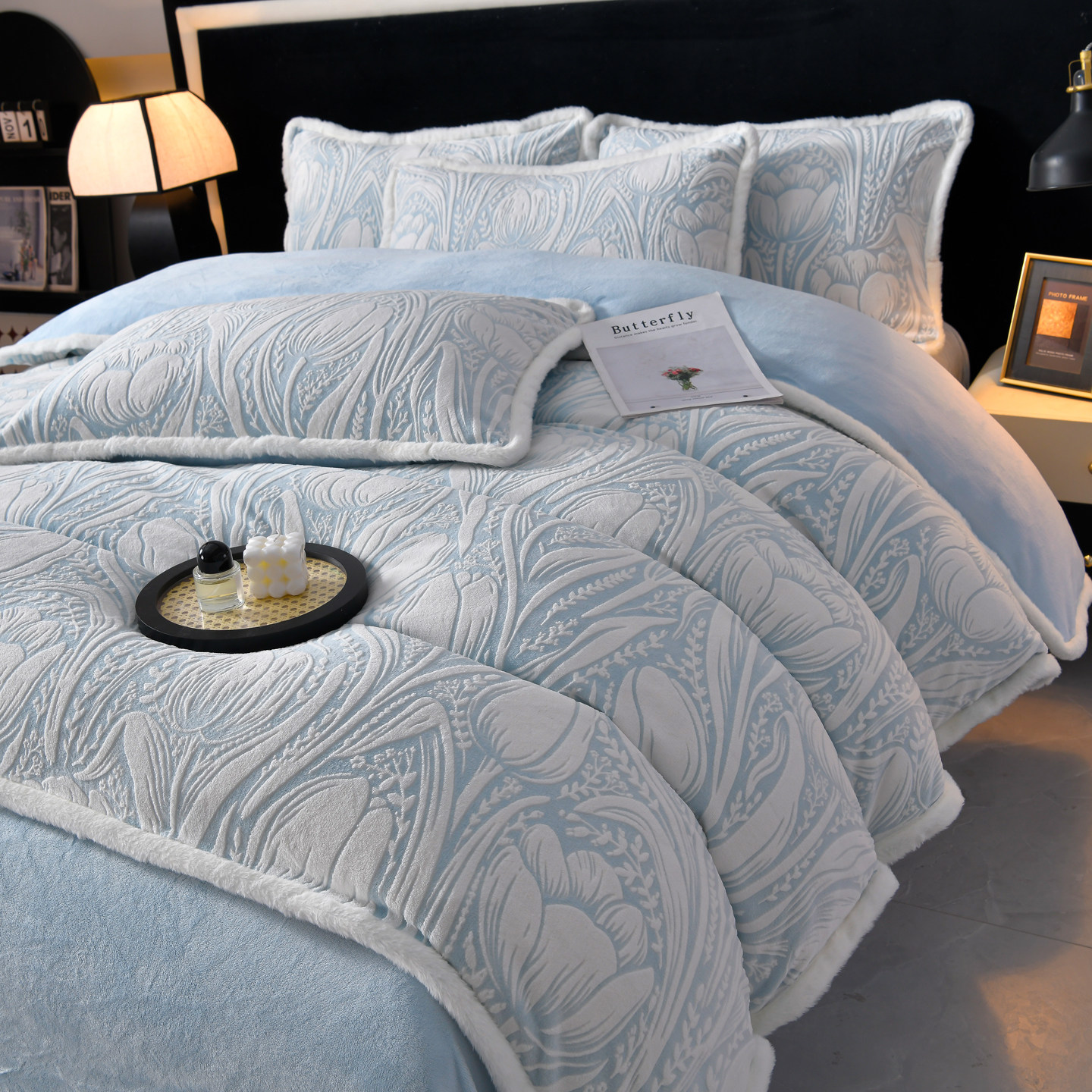 高端雕花绒四件套冬季加厚保暖法莱绒被套冬天床上用品兔毛绒床笠