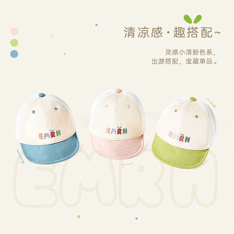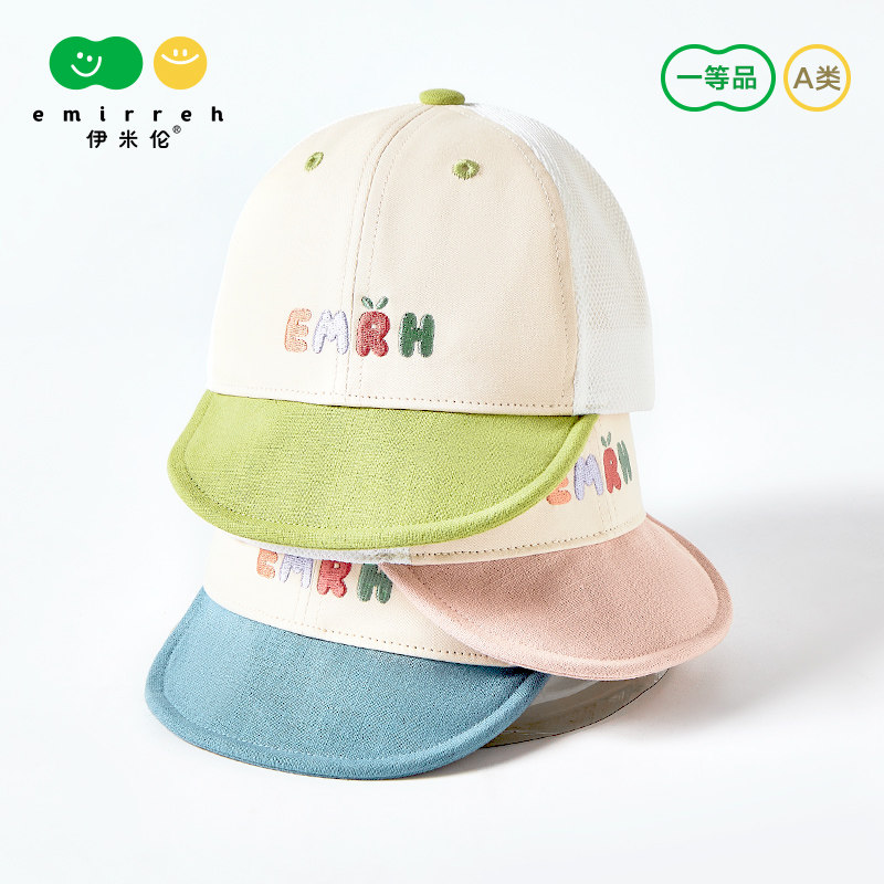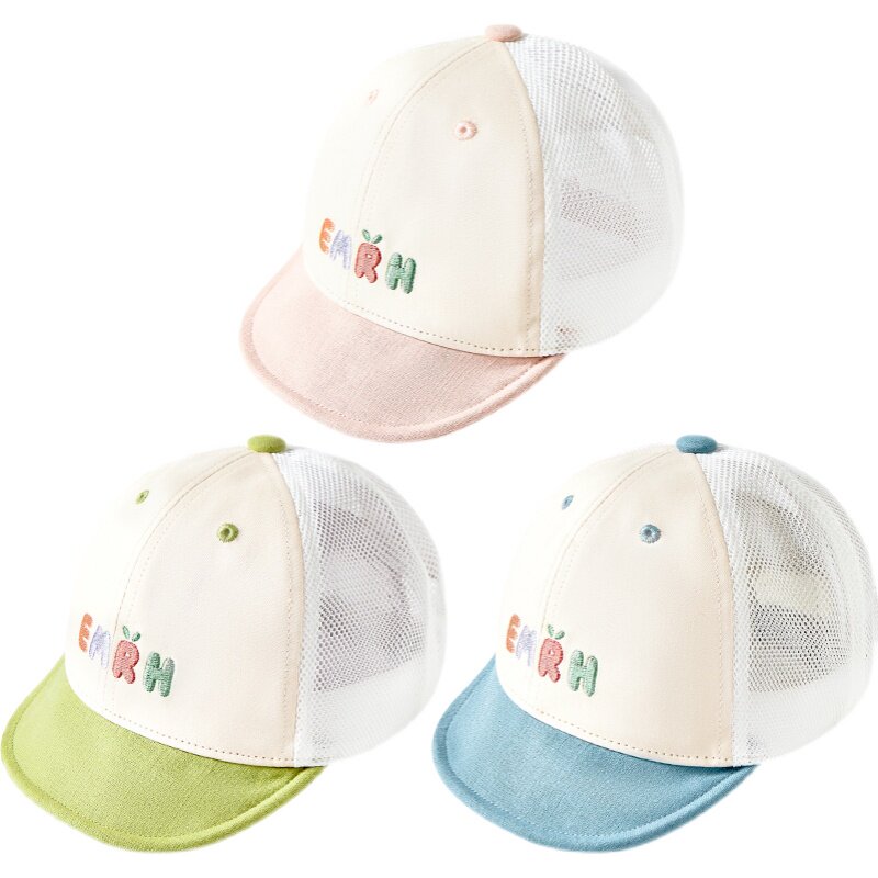 伊米伦小月龄鸭舌帽软檐可翻折宝宝帽子网眼遮阳帽薄款婴儿棒球帽