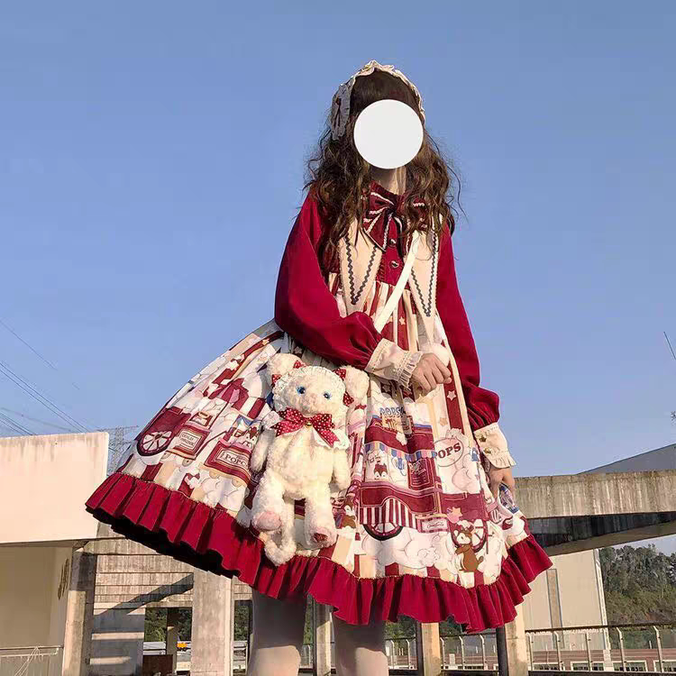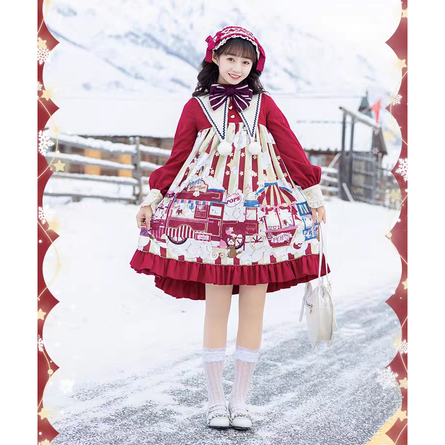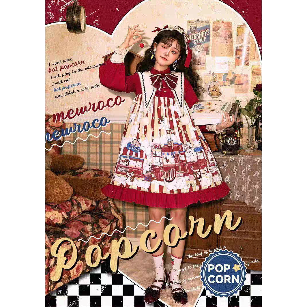 现货爆米花lolita日常连衣裙娃娃装可爱甜美洛丽塔洋装学生女新年