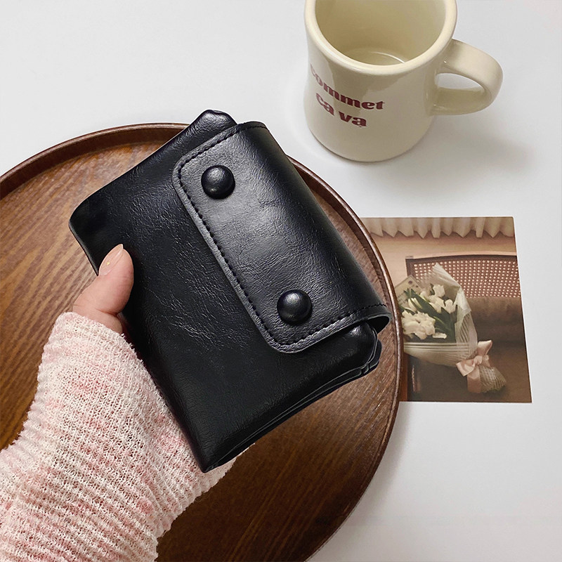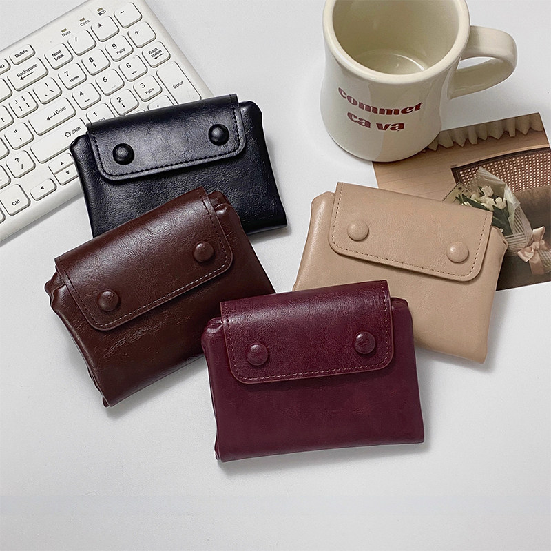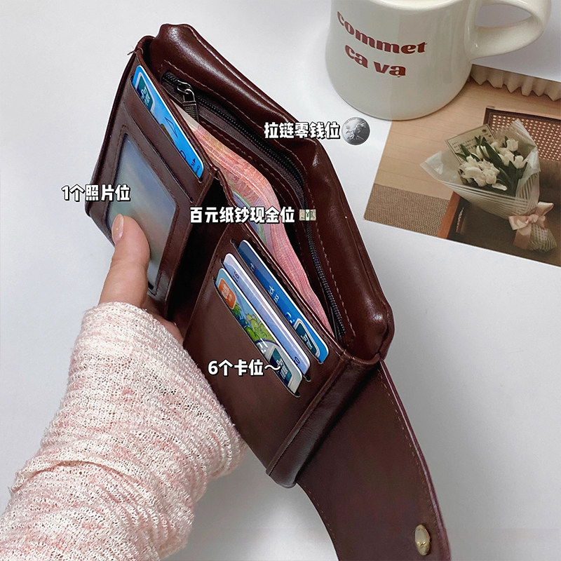 韩系ins翻盖复古软皮小钱包卡包学生零钱包多功能女士钱夹大容量~