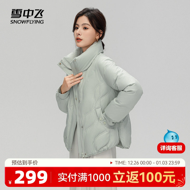 雪中飞2025冬新款女士立领短款羽绒服气质温柔简约休闲居家暖红