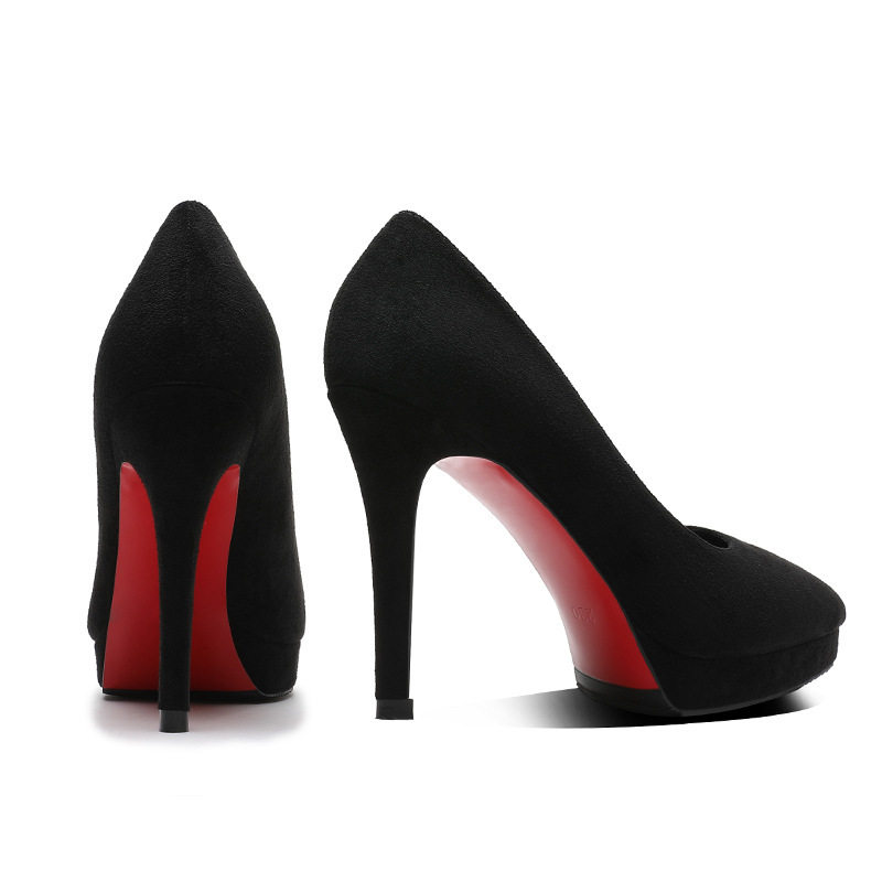 608-2 高跟鞋女防水台细跟尖头浅口小码绒面女鞋夜店性感单鞋
