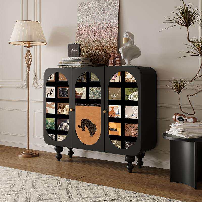 法式艺术实木餐边柜客厅储物柜沙发边柜靠墙收纳置物柜过道装饰柜