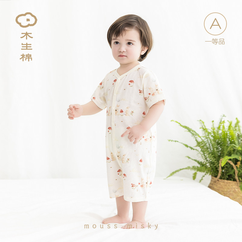 木生棉女宝宝短袖连体衣夏季薄款婴儿透气睡衣服公主可爱哈衣爬服