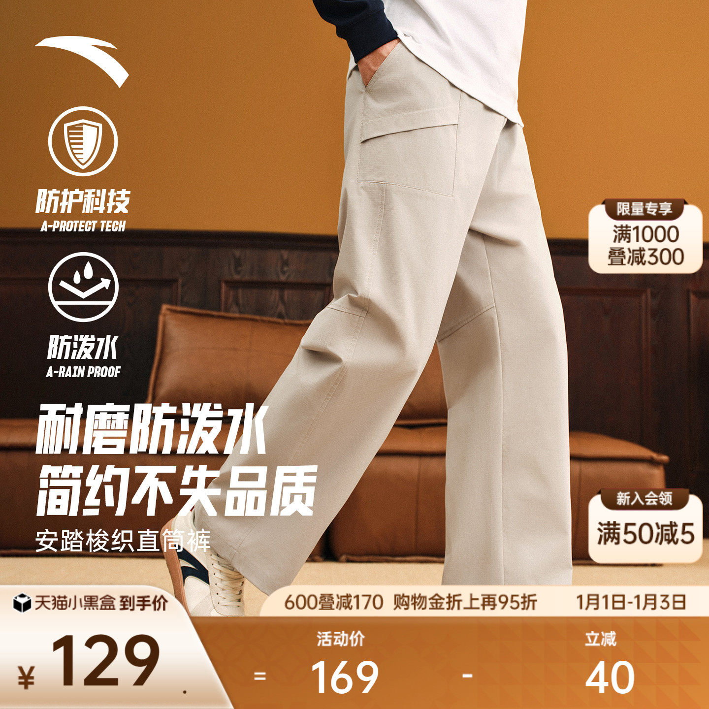 【林孝埈同款】安踏美式休闲长裤男士冬宽松直筒裤阔腿工装运动裤