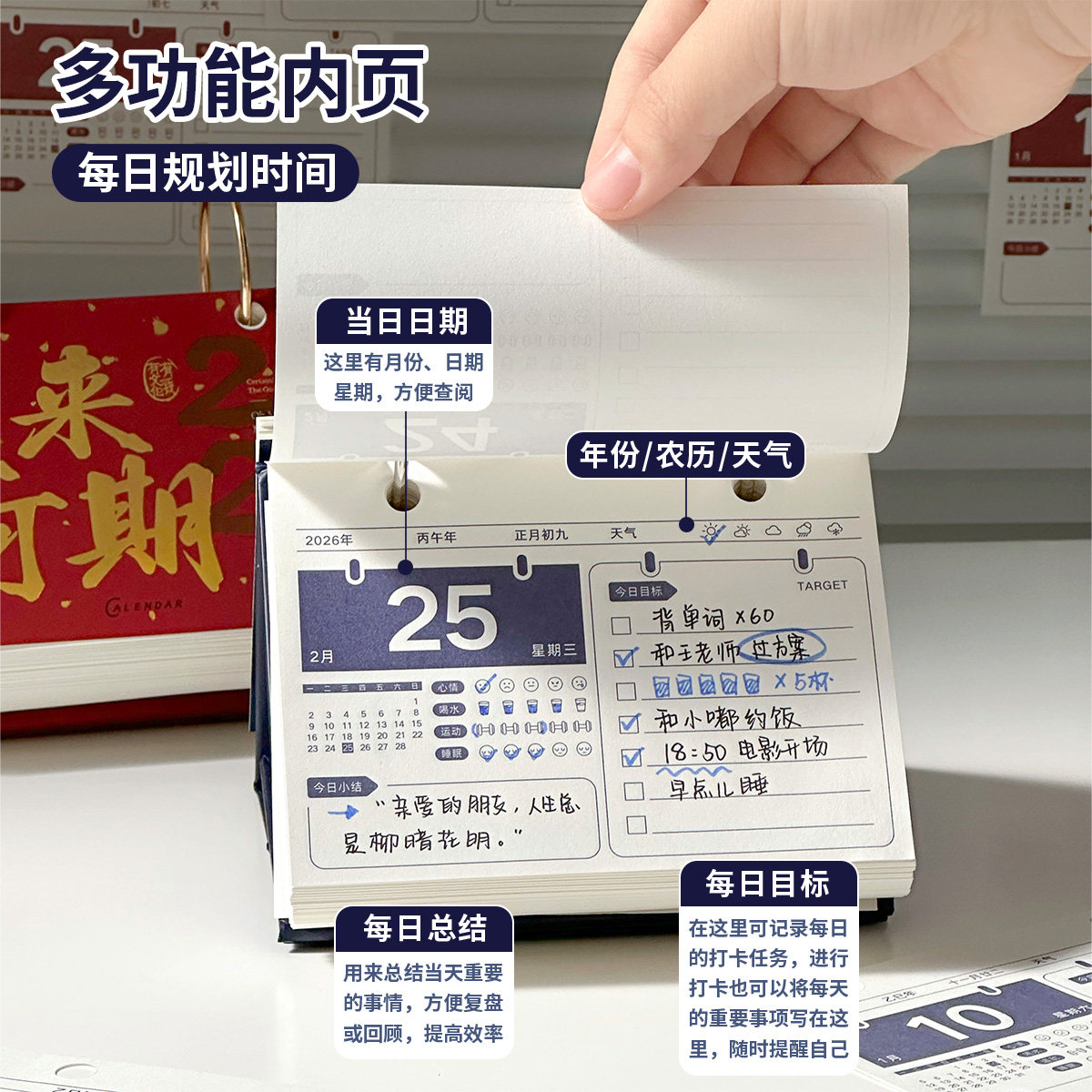 三年二班2026年日历新款台历记事本日程计划表每日一撕打卡计划日历桌面摆件办公室工位好物神器2025倒计时小