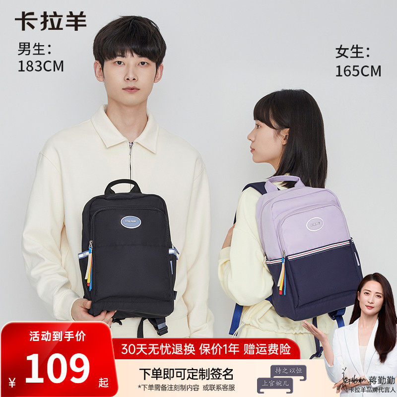 卡拉羊中学生云朵书包减负防下坠双肩包男大容量轻便抑菌背包女
