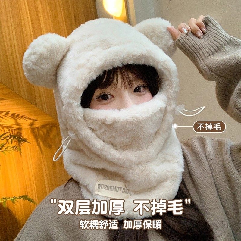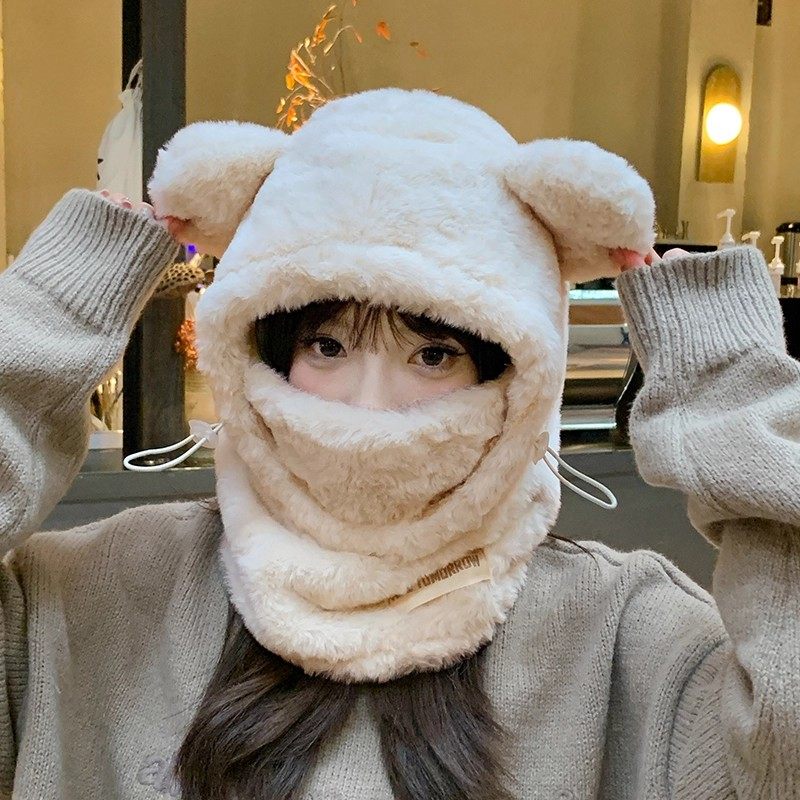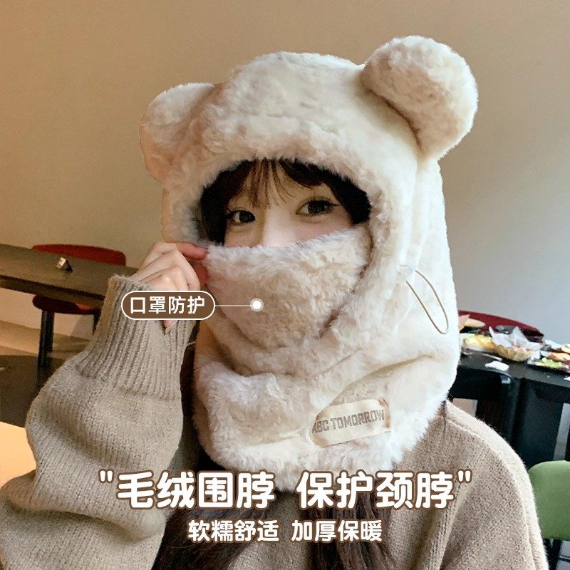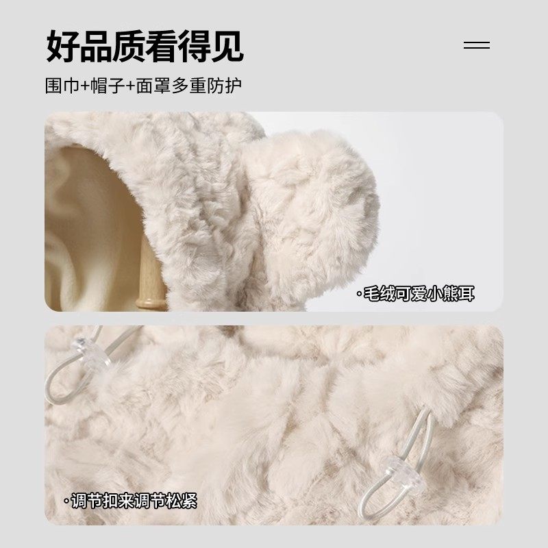 可爱毛绒帽子围巾冬季护耳运动帽男女加厚保暖围脖雷锋帽防寒加绒