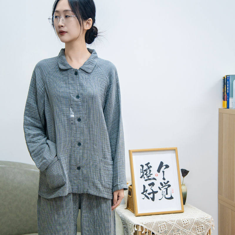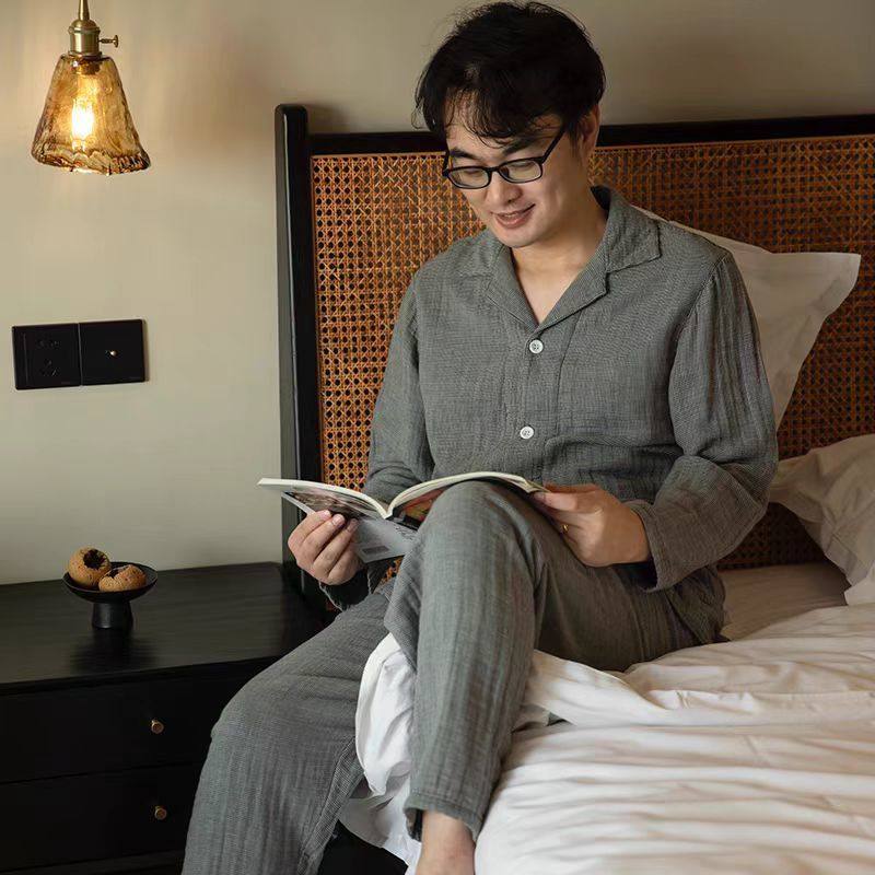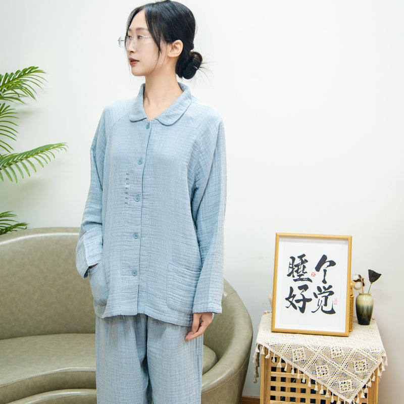 全棉A类四层纱睡衣纯棉纱布情侣家居服套装男士女款春秋冬季加厚