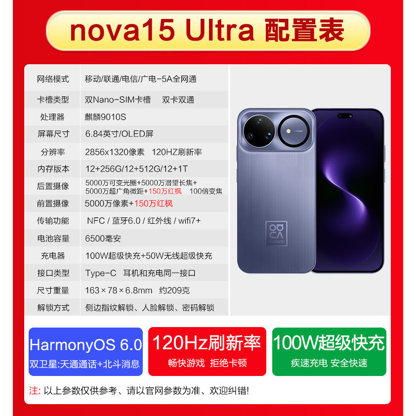 【新款上市】Huawei/华为 nova 15 Ultra 畅连无网通信无线充电全网通5A智能手机华为官方旗舰店正品官网学生