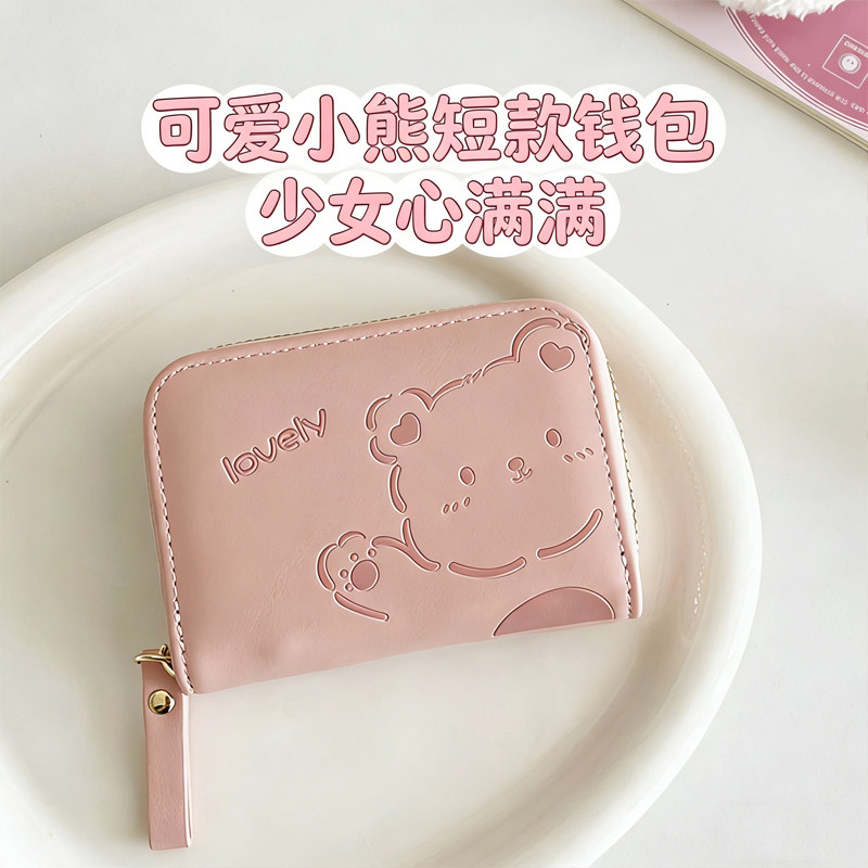 卡包2026新款学生拉链多卡位可爱卡套零钱包压花小熊女生证件收纳
