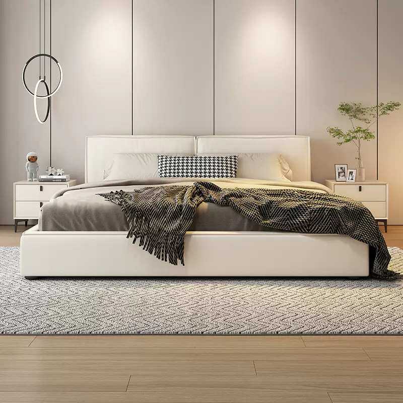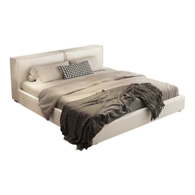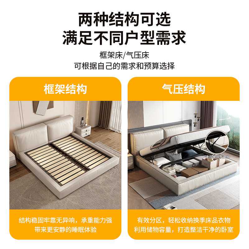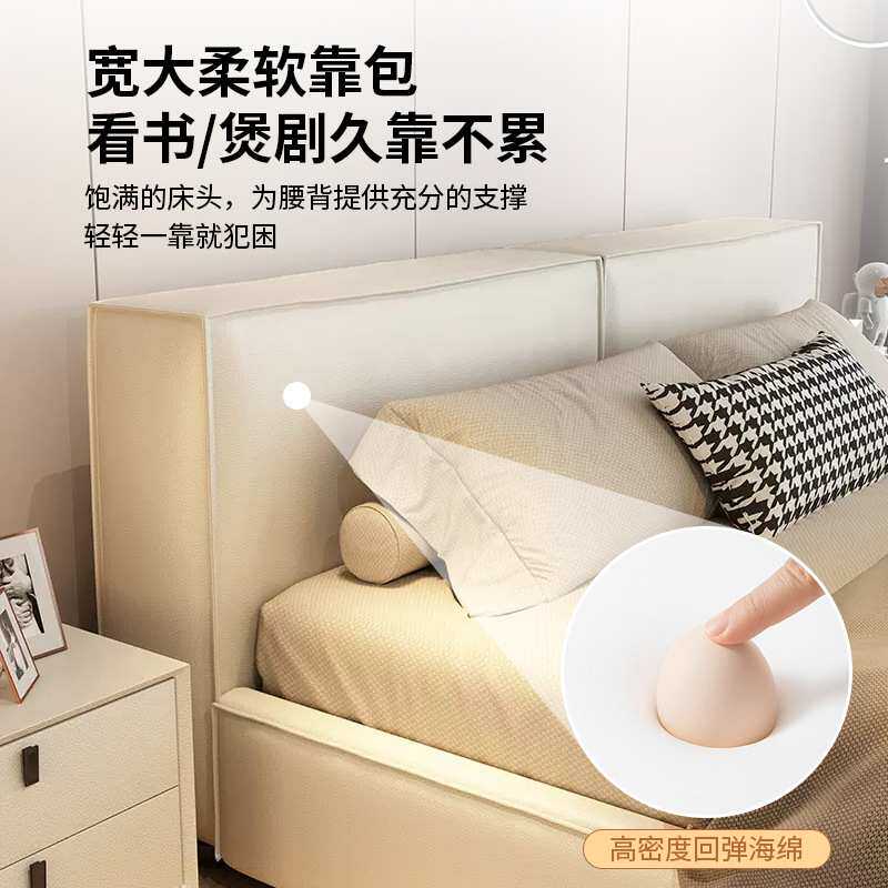 意式极简轻奢豆腐块真皮床小户型软包奶油风皮床 主卧简约皮艺床