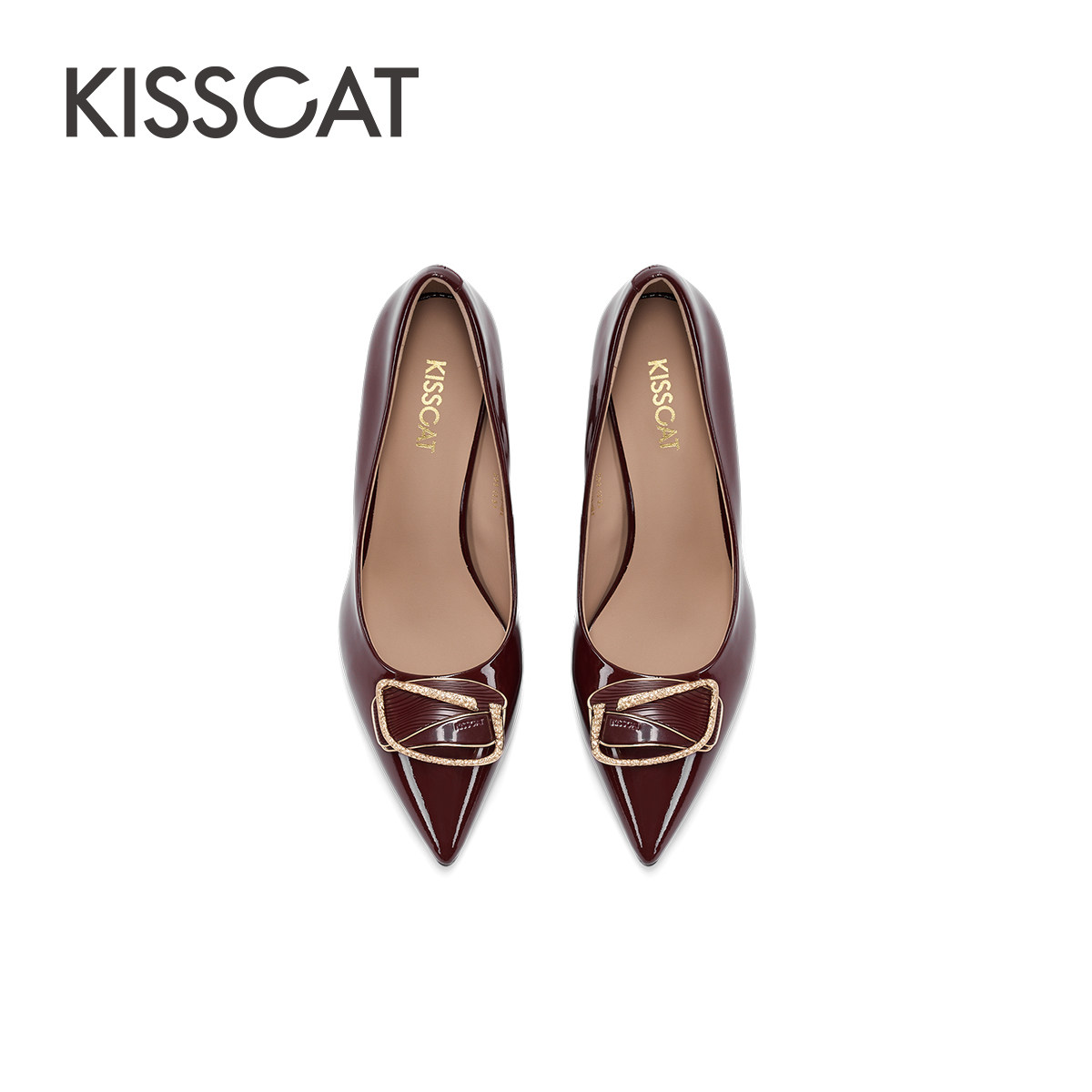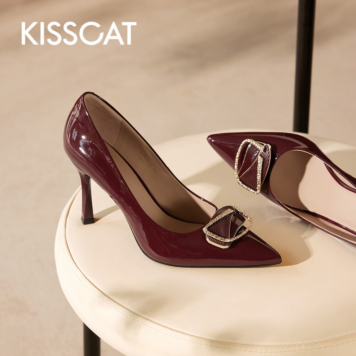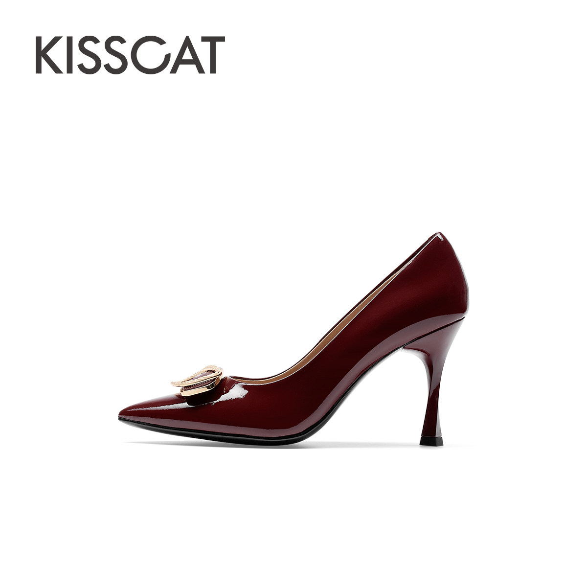 KISSCAT接吻猫秋季新款通勤尖头高跟鞋气质时尚浅口单鞋女