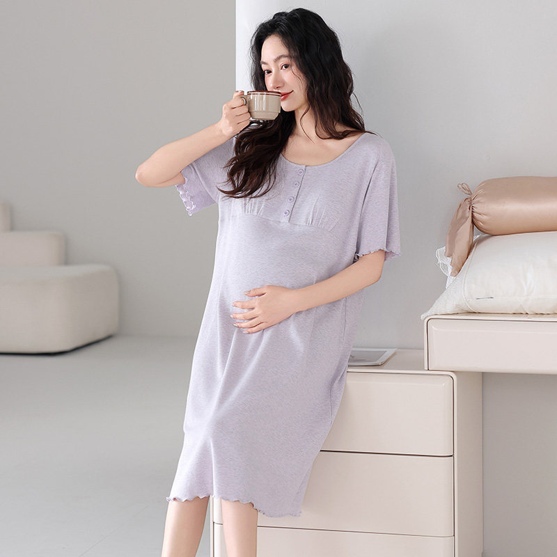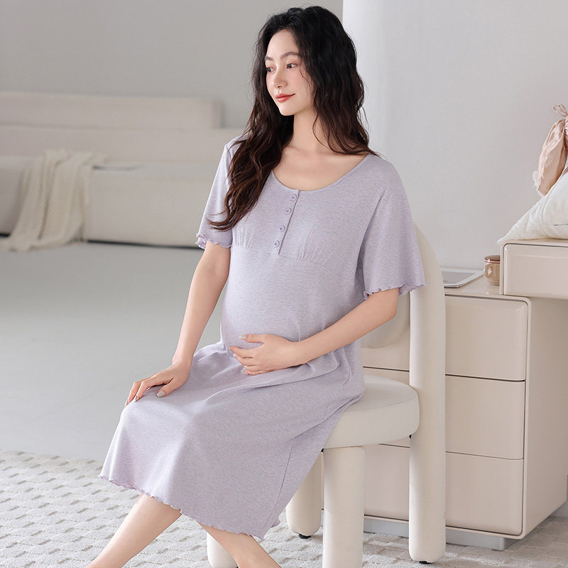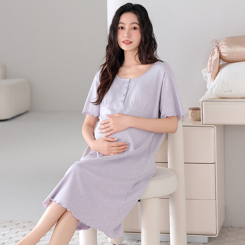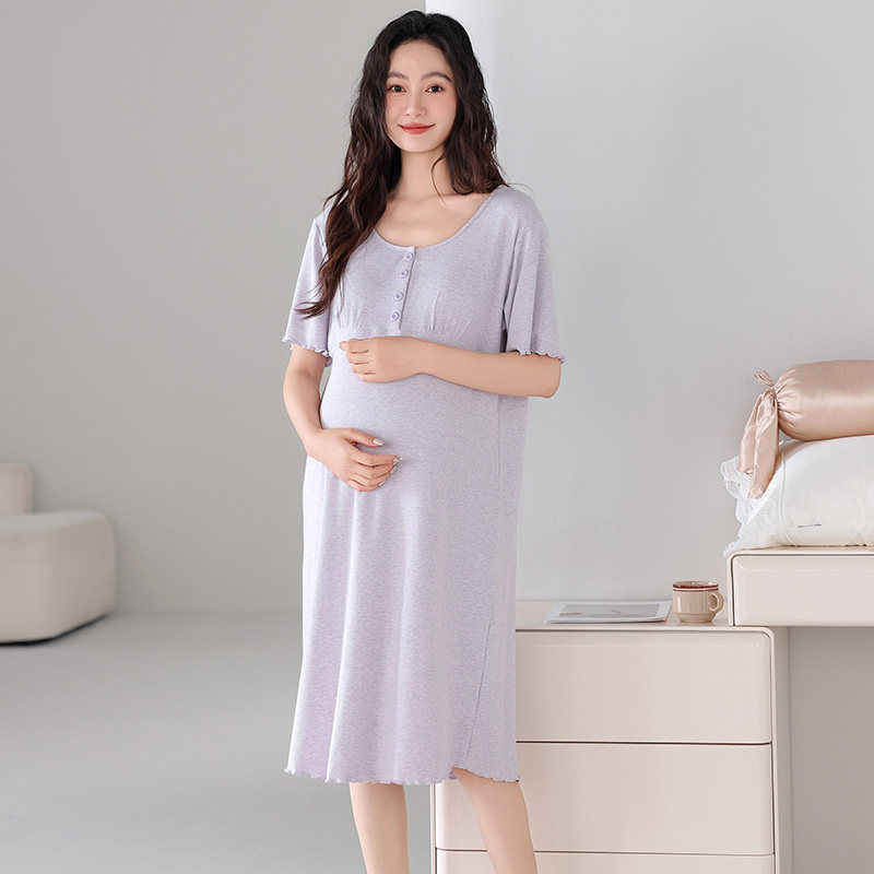 婧麒孕妇哺乳睡裙家居裙带胸垫产后喂奶孕妇连衣裙夏季薄款待产裙