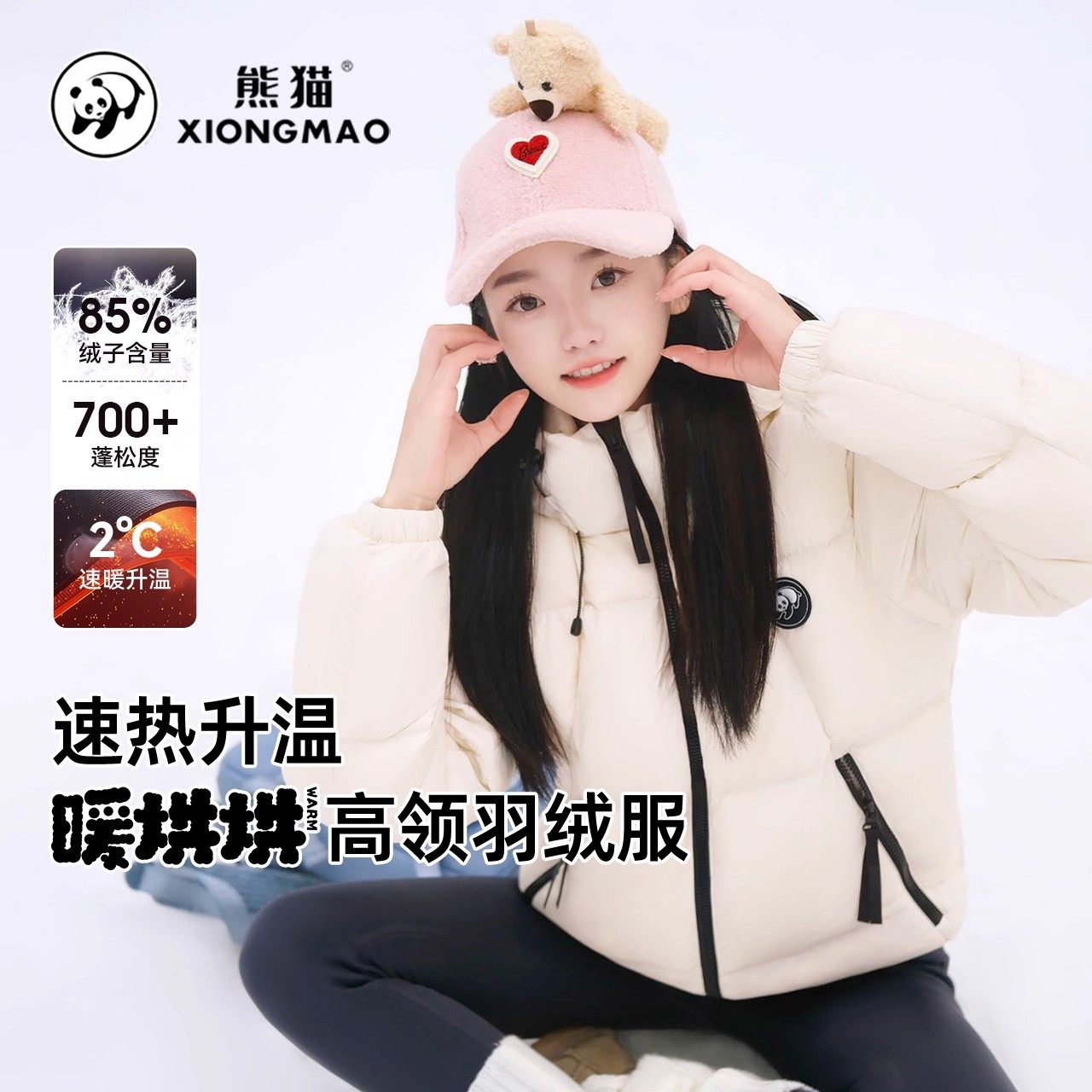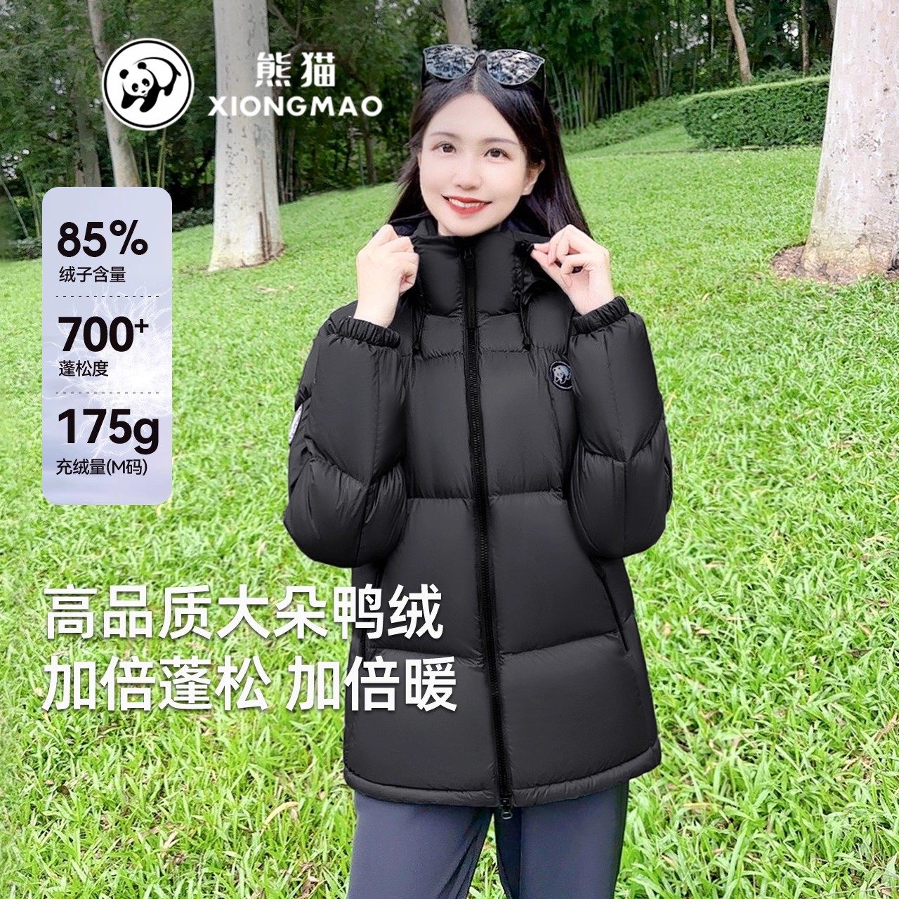 熊猫加厚羽绒服女2025冬季新款时尚小个子保暖户外御寒连帽面包服
