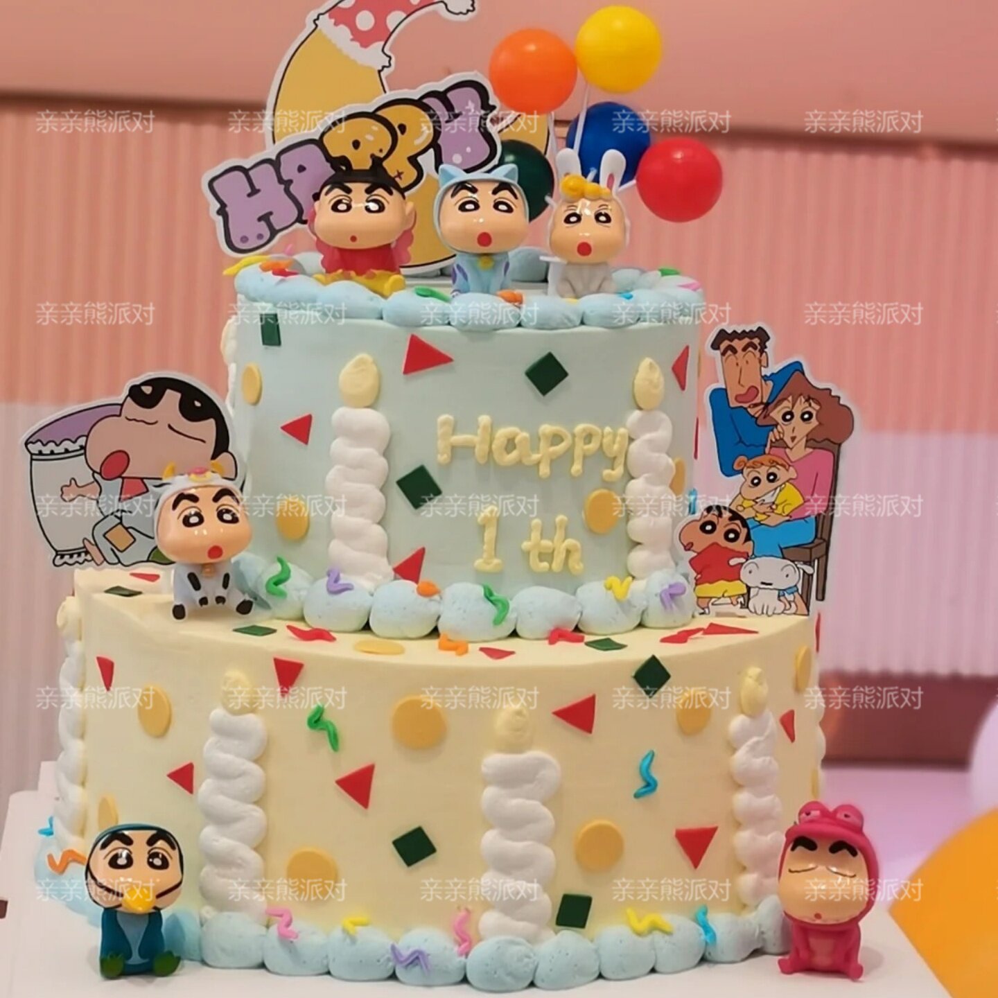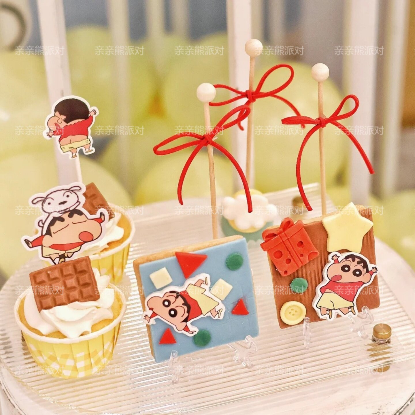 儿童卡通生日派对装饰蜡笔小新主题推推乐贴纸烘焙蛋糕纸杯插件