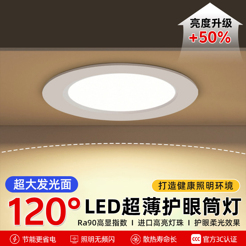 筒灯led嵌入式7.5公分开孔无主灯家用孔灯超薄卧室客厅吊顶灯