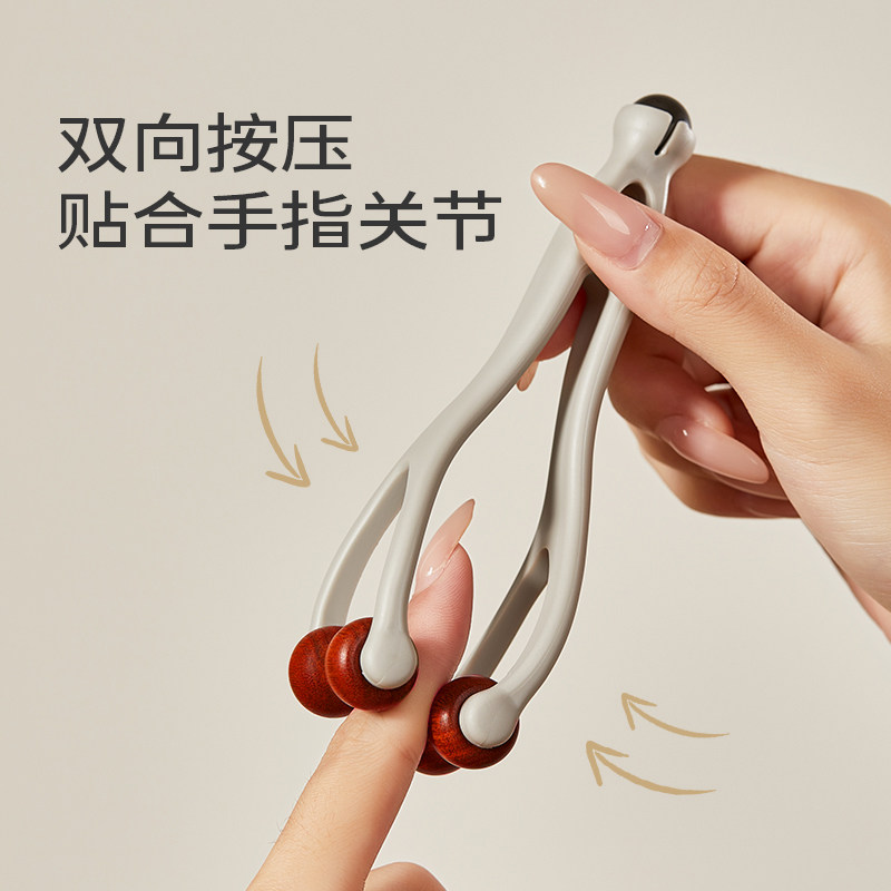 檀木养生手指按摩器关节经络疏通滚轮按摩夹神器穴位按摩手腱鞘炎
