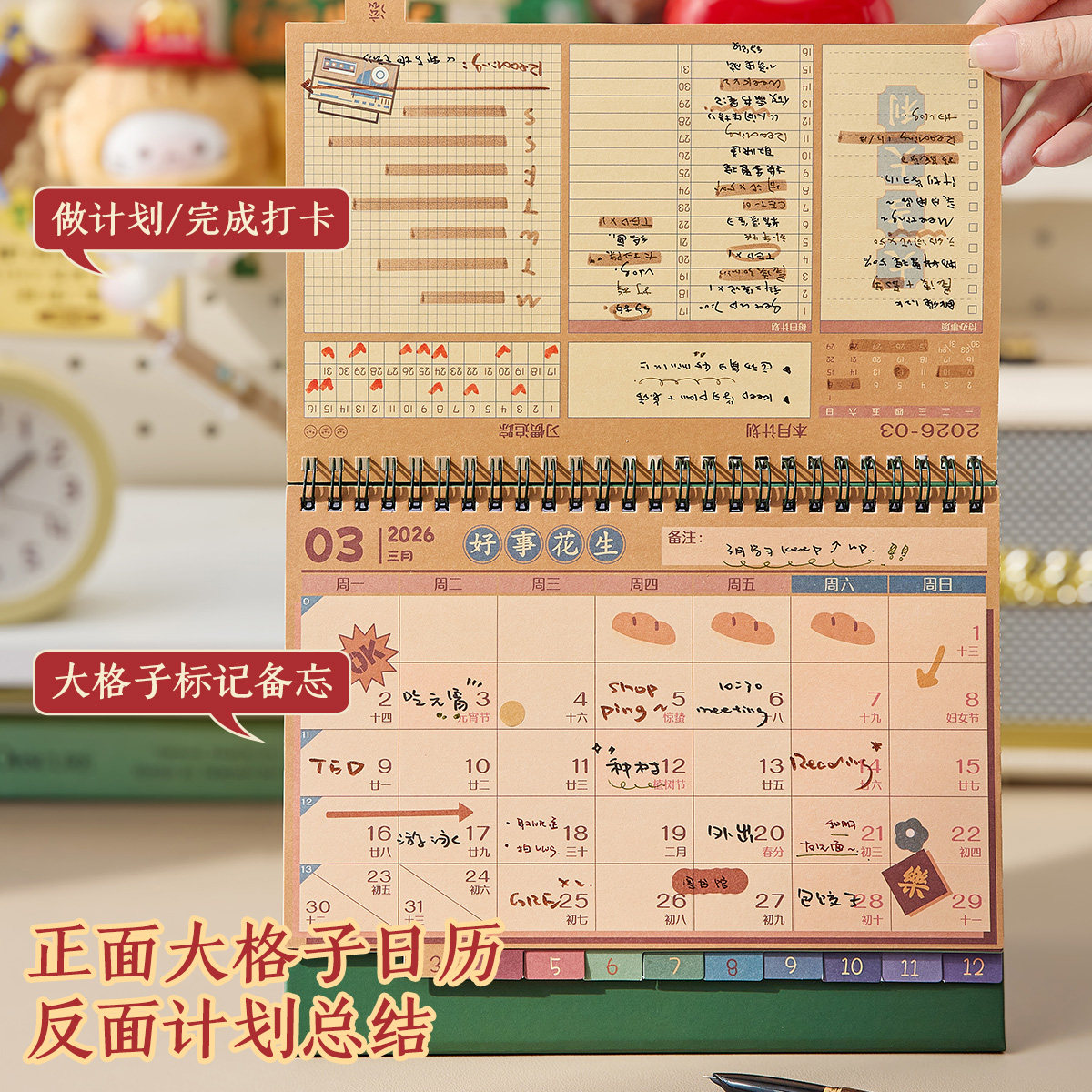 2026年台历日历本创意简约桌面摆件马年新款月历定制工作打卡小计划本商务办公ins风考研日历2025记事台历本