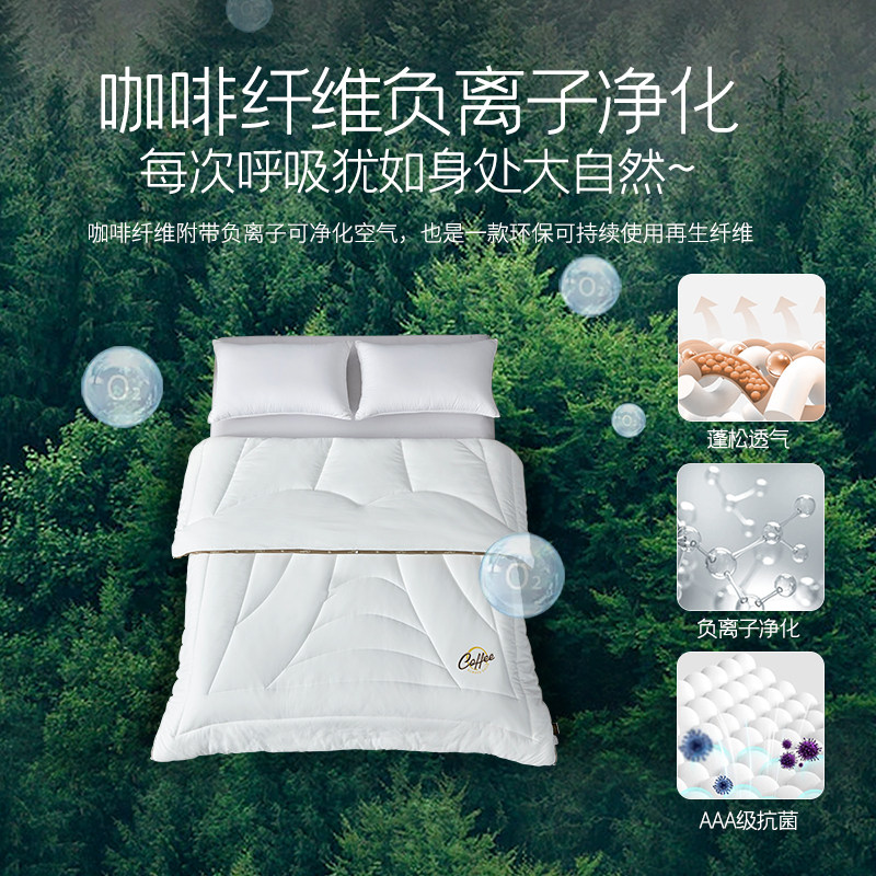 梦洁家纺被子咖啡纤维被四季通用厚被春秋被保暖加厚冬被抗菌被芯