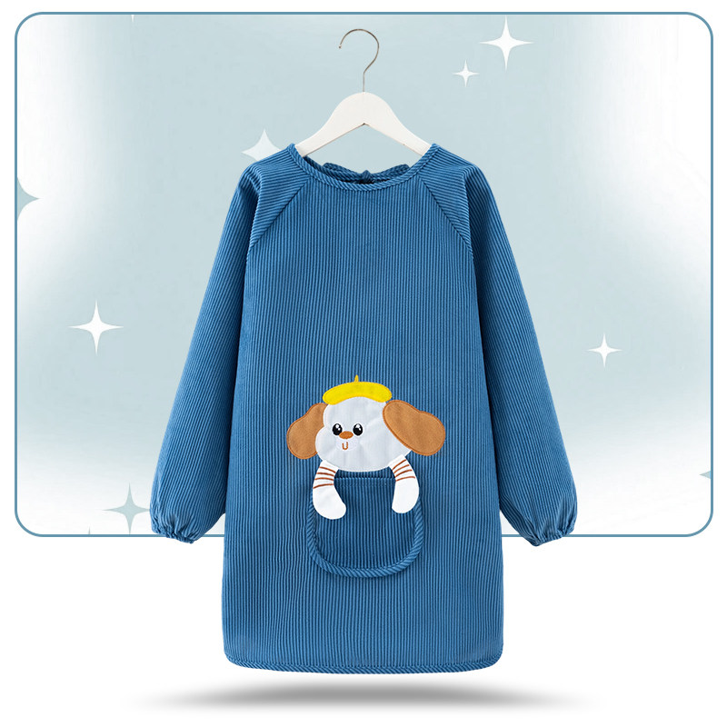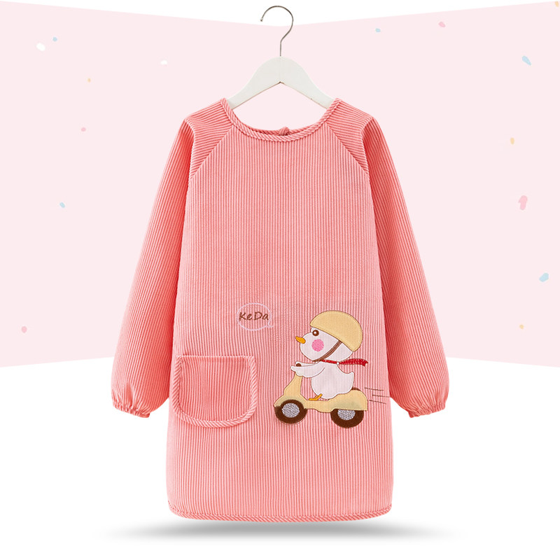 秋冬罩衣儿童防水反穿衣画画围裙辅食围兜大码吃饭护衣灯芯绒卡通