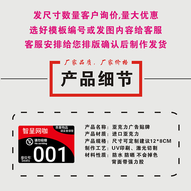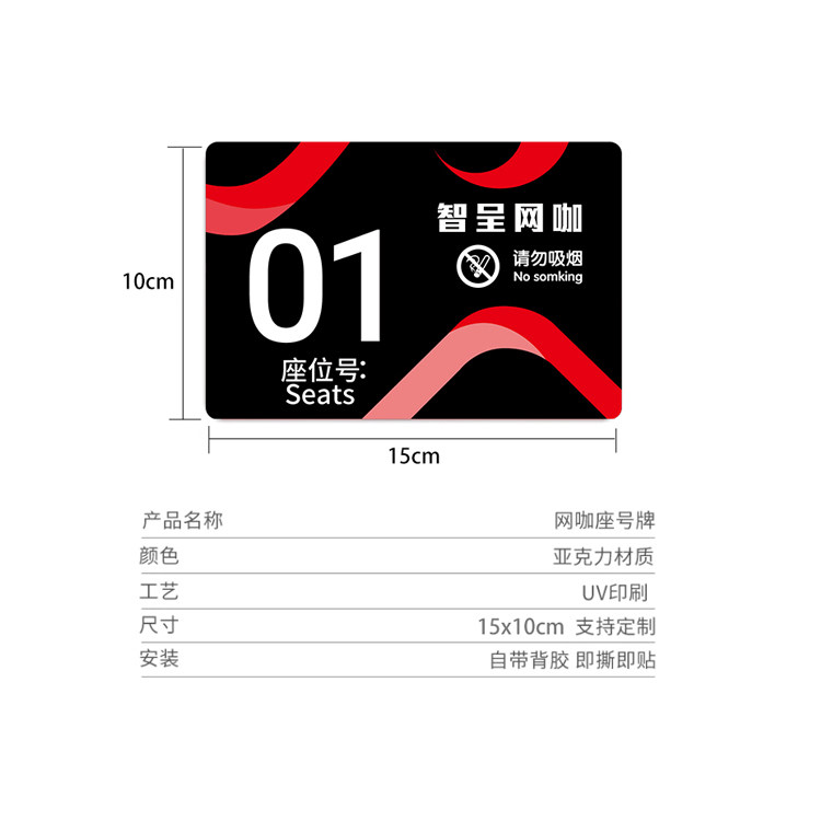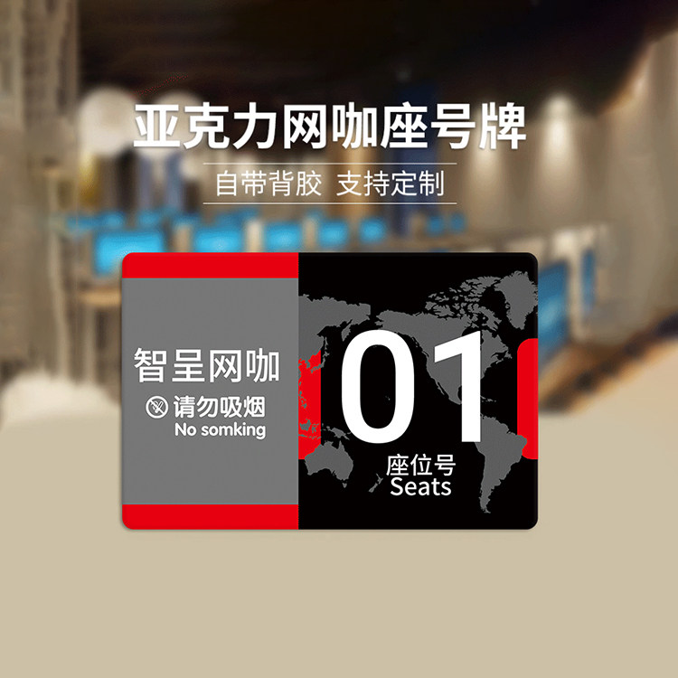 定制网吧号码牌座位牌柜号牌桌号牌电脑主机柜台座位牌12345678序号牌自粘编码标志亚克力电竞馆数字桌贴