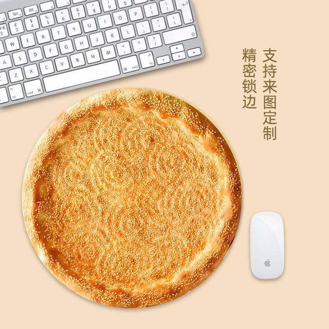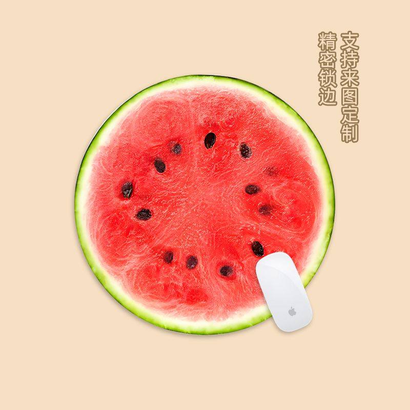 水果西瓜苹果螺狮粉火锅馕饼创意鼠标垫圆形可爱电脑键盘桌垫锁边